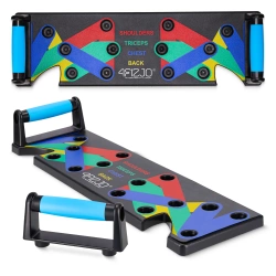 Oprócz typowych podpórek do pompek dostępne są również deski z ekspanderami, które pozwalają na różnorodne zamocowania uchwytów, co umożliwia prawidłowy trening różnych partii mięśni.