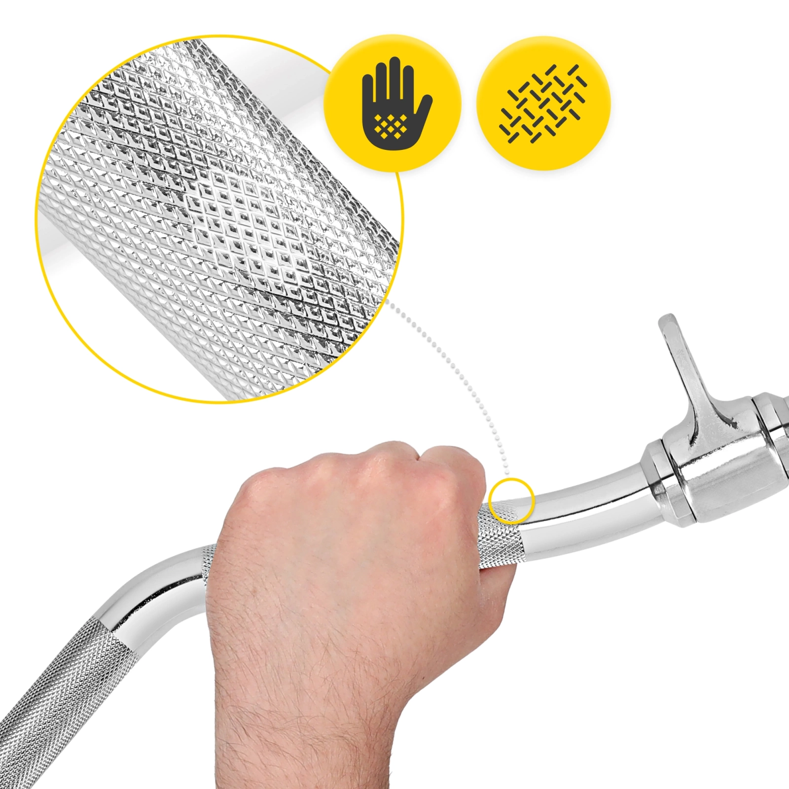 ✅ Ryflowane elementy rękojeści zapobiegają wyślizgnięciu się uchwytu z dłoni podczas treningu, co jest niezwykle przydatne podczas ćwiczeń z dużym obciążeniem.