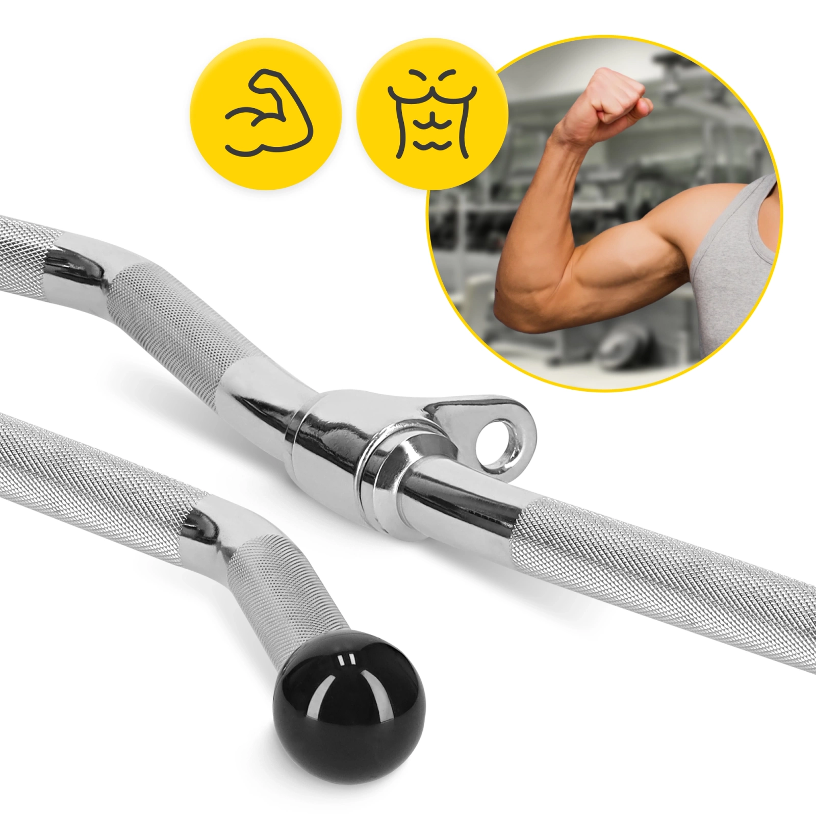 ✅ Długi, łamany uchwyt do wyciągu atlasu 4FIZJO został wykonany z trwałej stali chromowanej, która gwarantuje wytrzymałość i bezpieczeństwo użytkowania.