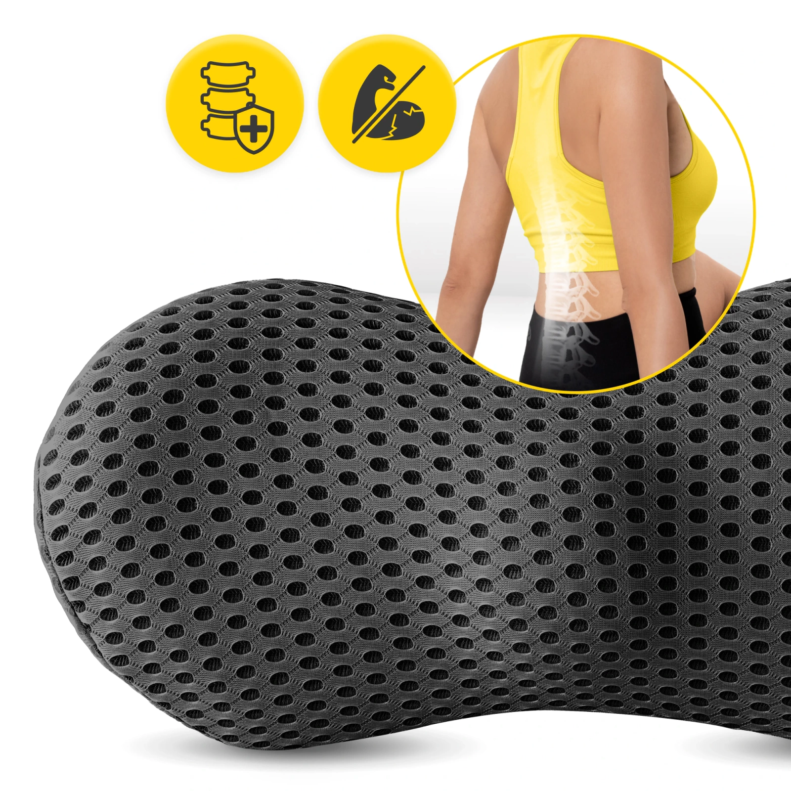 Poduszka do siedzenia na kręgosłup lędźwiowy ma ergonomiczny kształt. Idealnie dopasowuje się do kształtu pleców. Idealnie wypełnia zakrzywienie kręgosłupa w odcinku lędźwiowym, dając stabilne podparcie. Zakrzywienie poduszki minimalizuje chęć przekrzywiania się na jedną ze stron. Zmniejsza to ryzyko pogłębienia wad postawy. Poduszka może zmniejszyć napięcia, które są jedną z najczęstszych przyczyn bólów kręgosłupa, a w tym odcinka lędźwiowego.