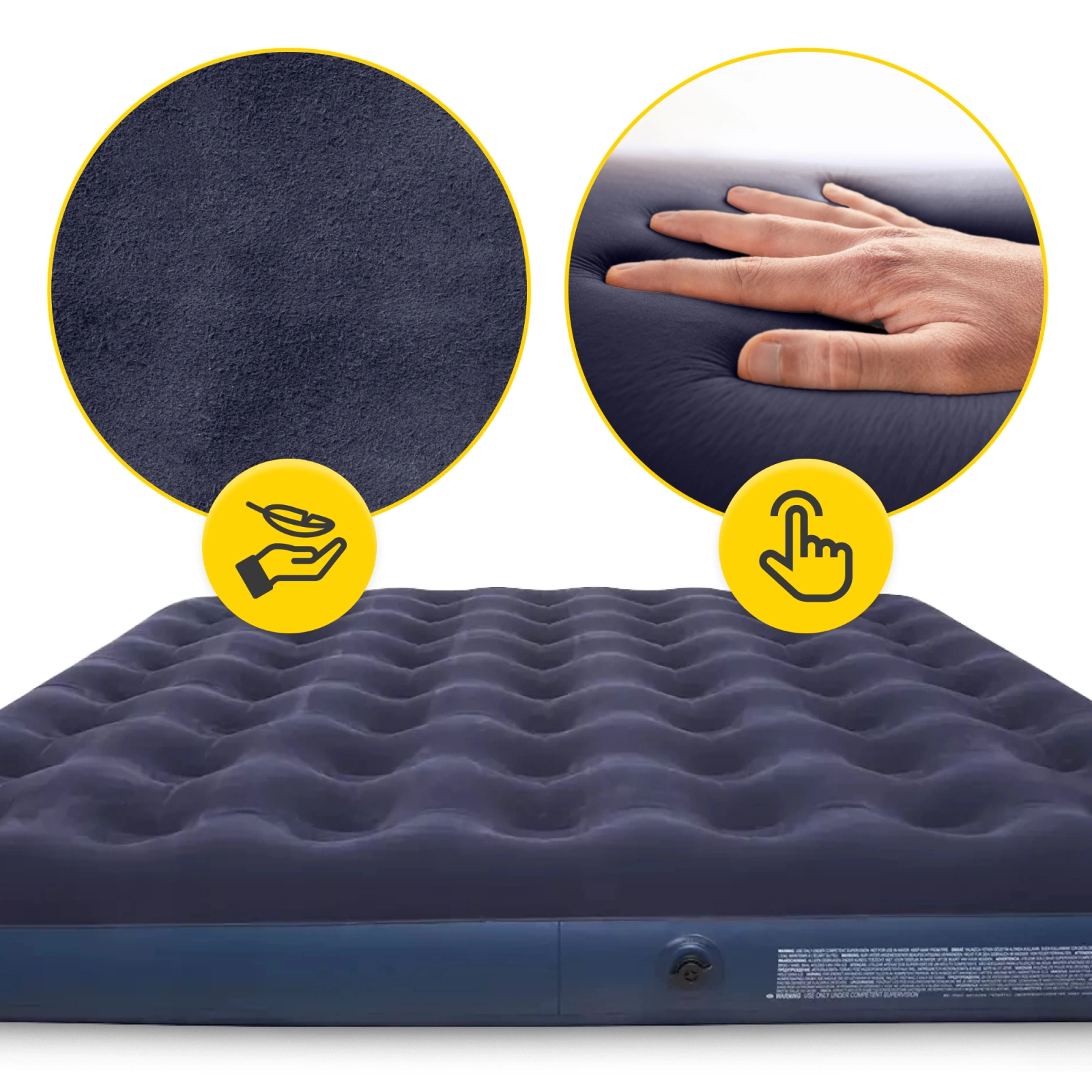 Materac dmuchany flokowany AVENLI dwuosobowy z pompką i poduszkami