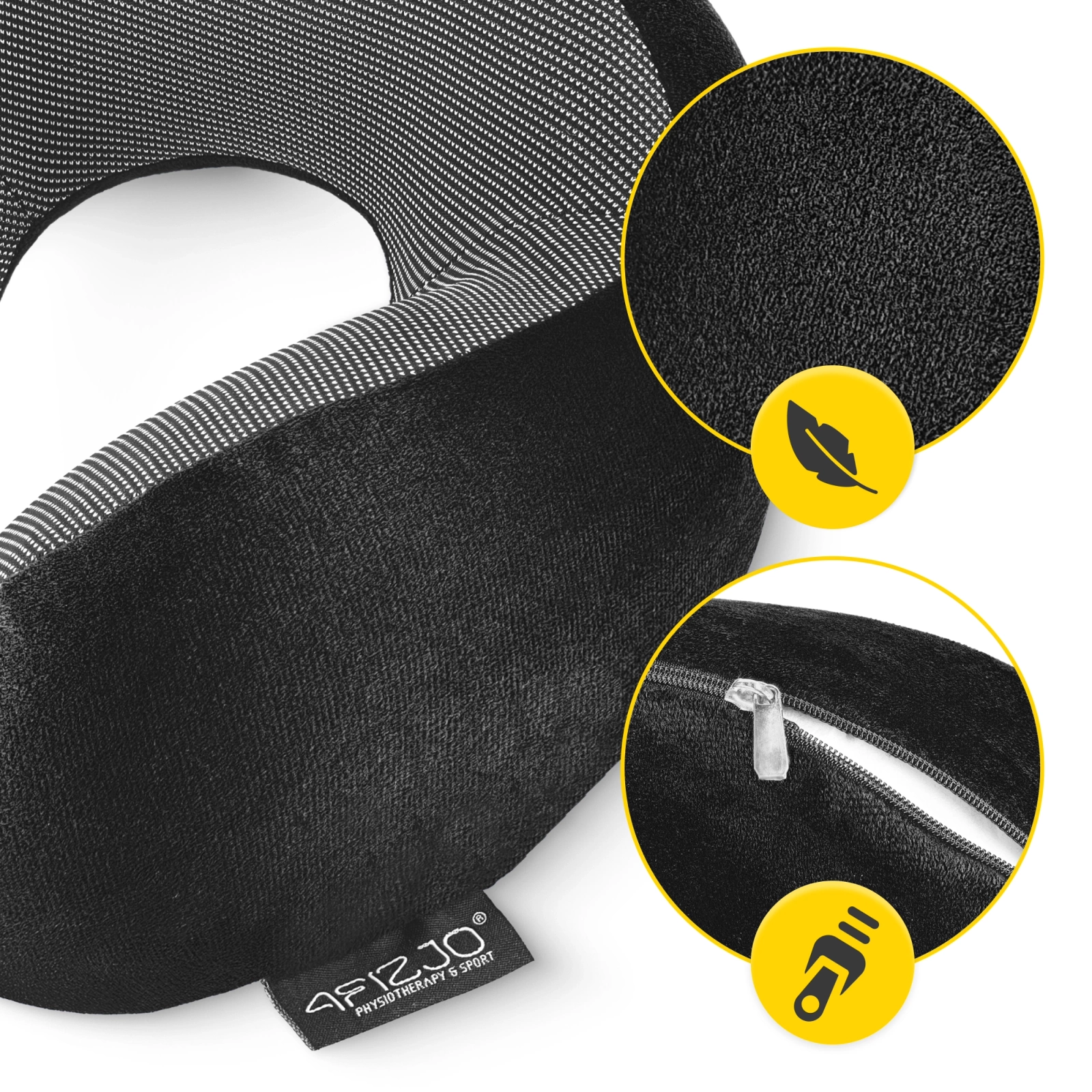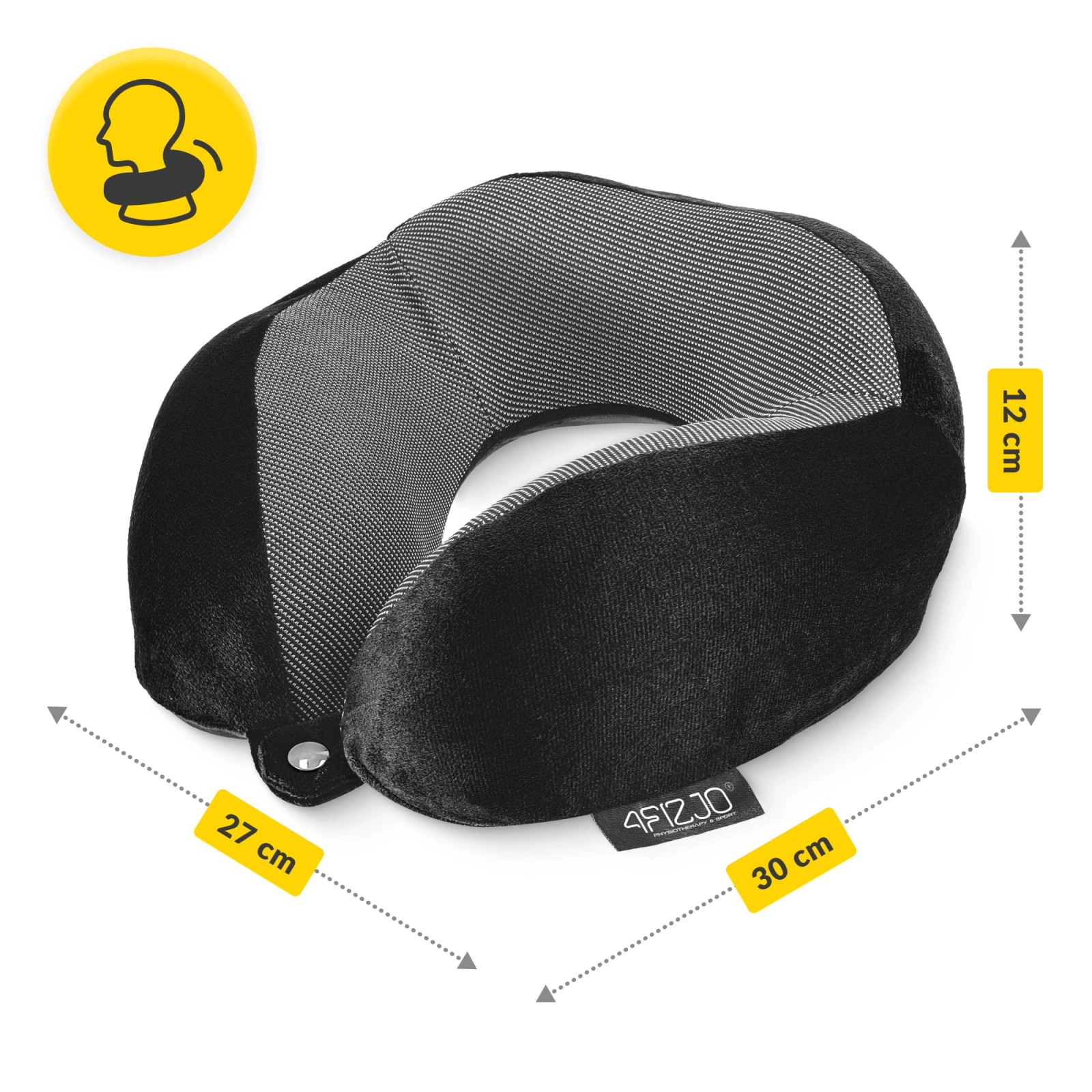 Poduszka podróżna czarna 4FIZJO rogal do spania turystyczny