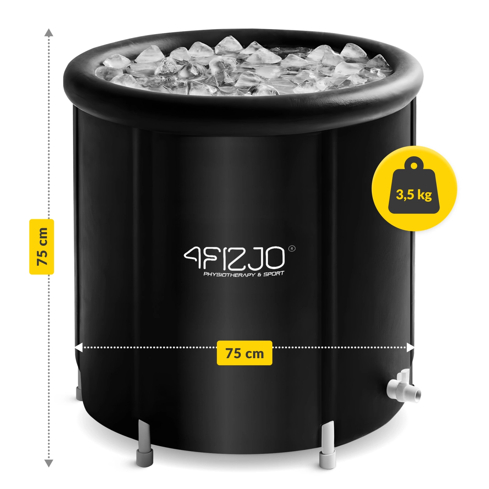 Wolnostojąca wanna do morsowania 4FIZJO jest kompaktowych rozmiarów i niewiele waży. Wygodnie korzystaj z niej w dowolnym miejscu.
