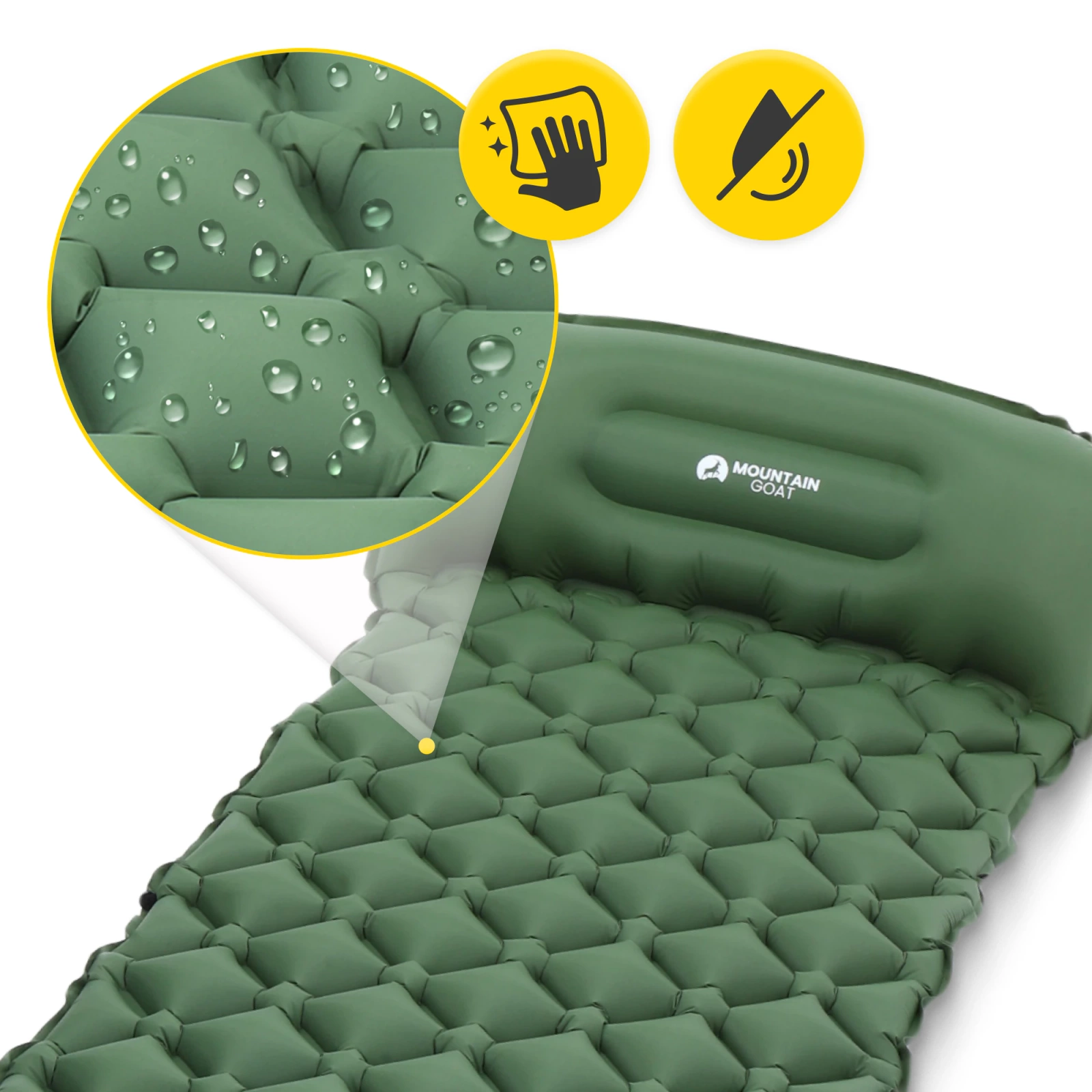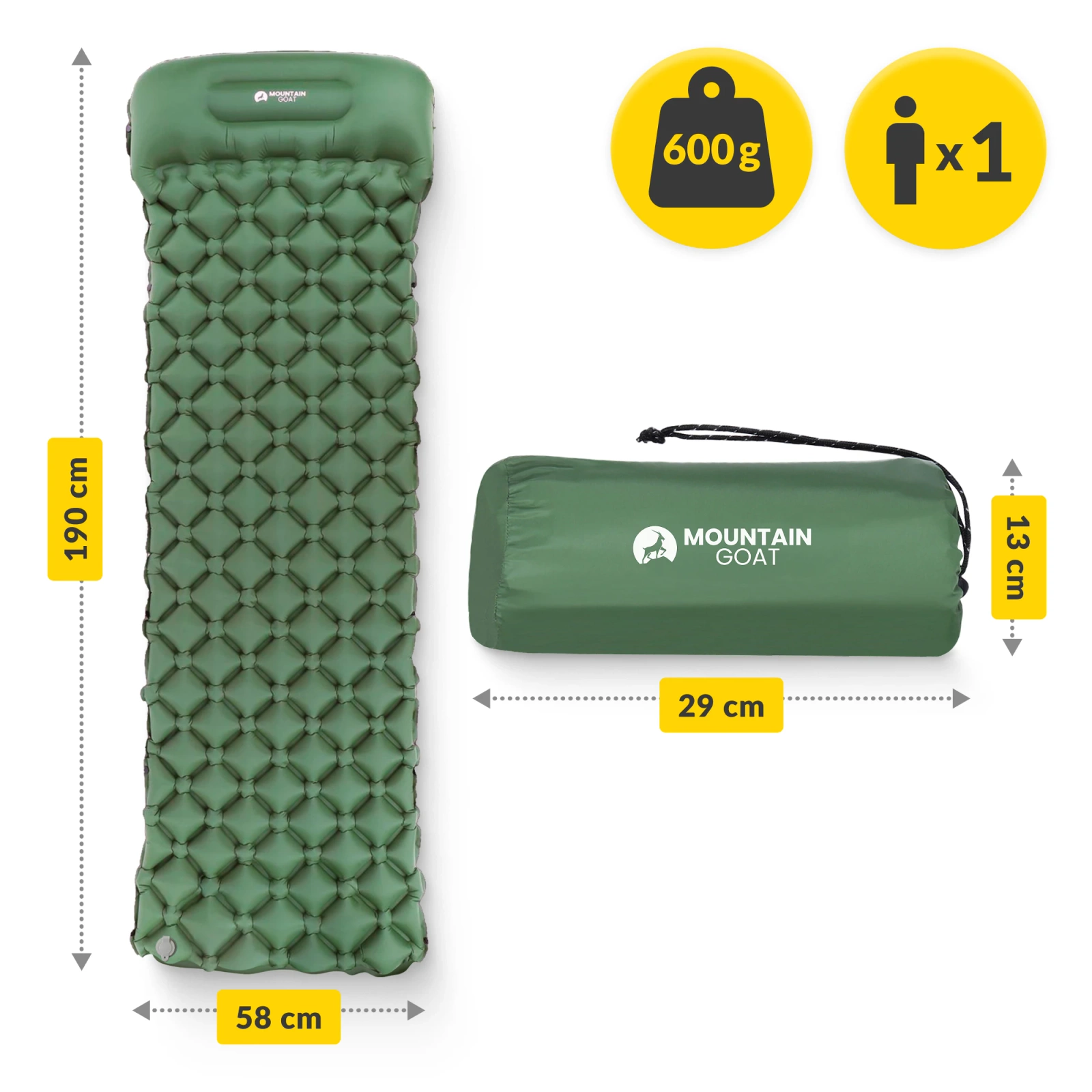 Turystyczny materac dmuchany do namiotu MOUNTAIN GOAT bez pompki wojskowa zieleń