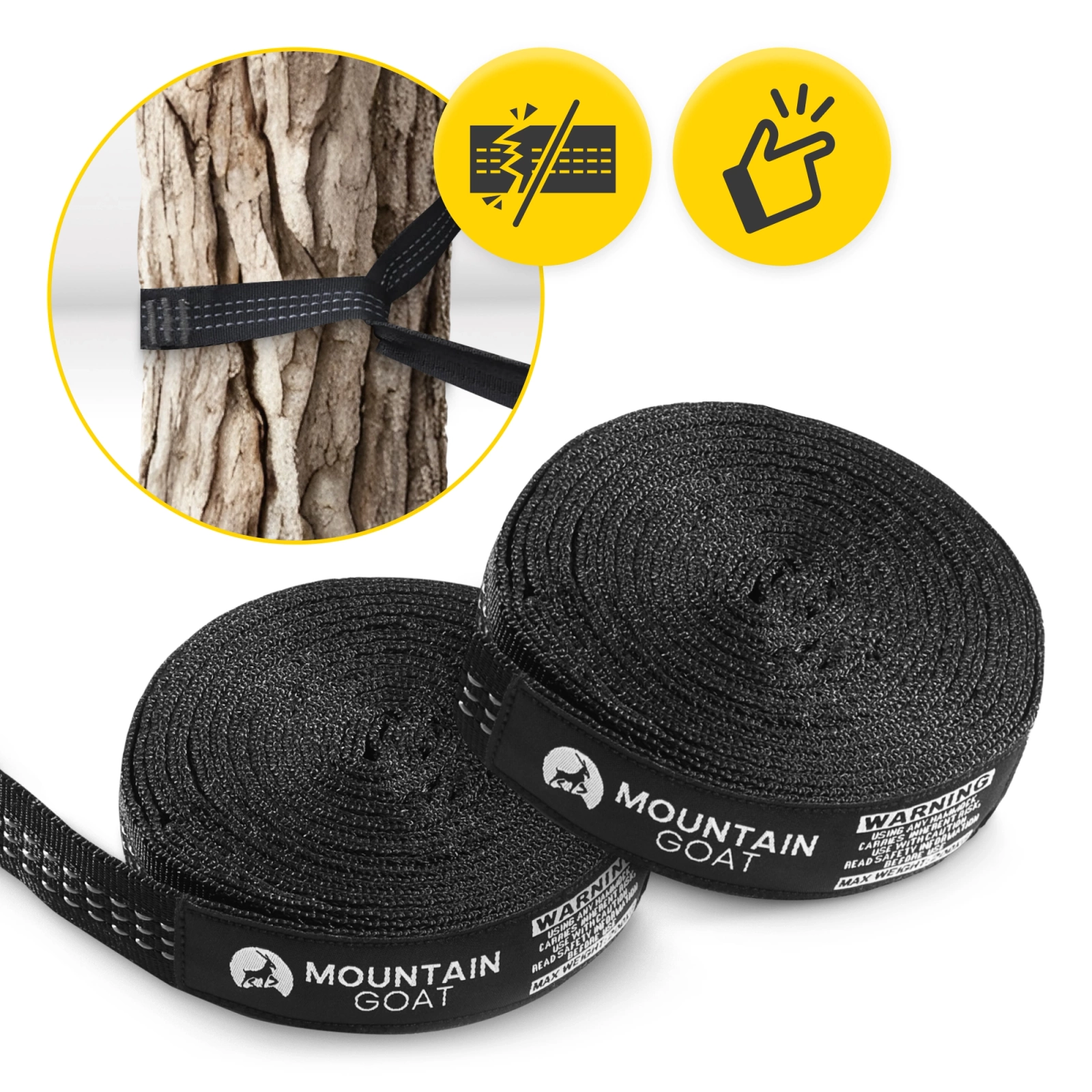 Hamak MOUNTAIN GOAT z łatwością rozwiesisz i zamontujesz dzięki dołączonym do zestawu 2 linkom i taśmom mocującym oraz 2 karabińczykom.