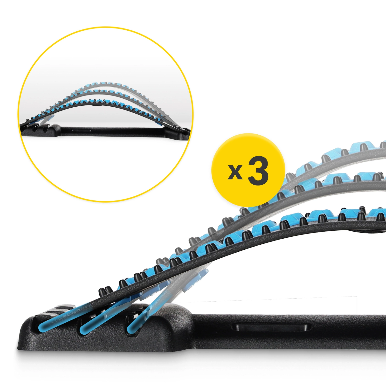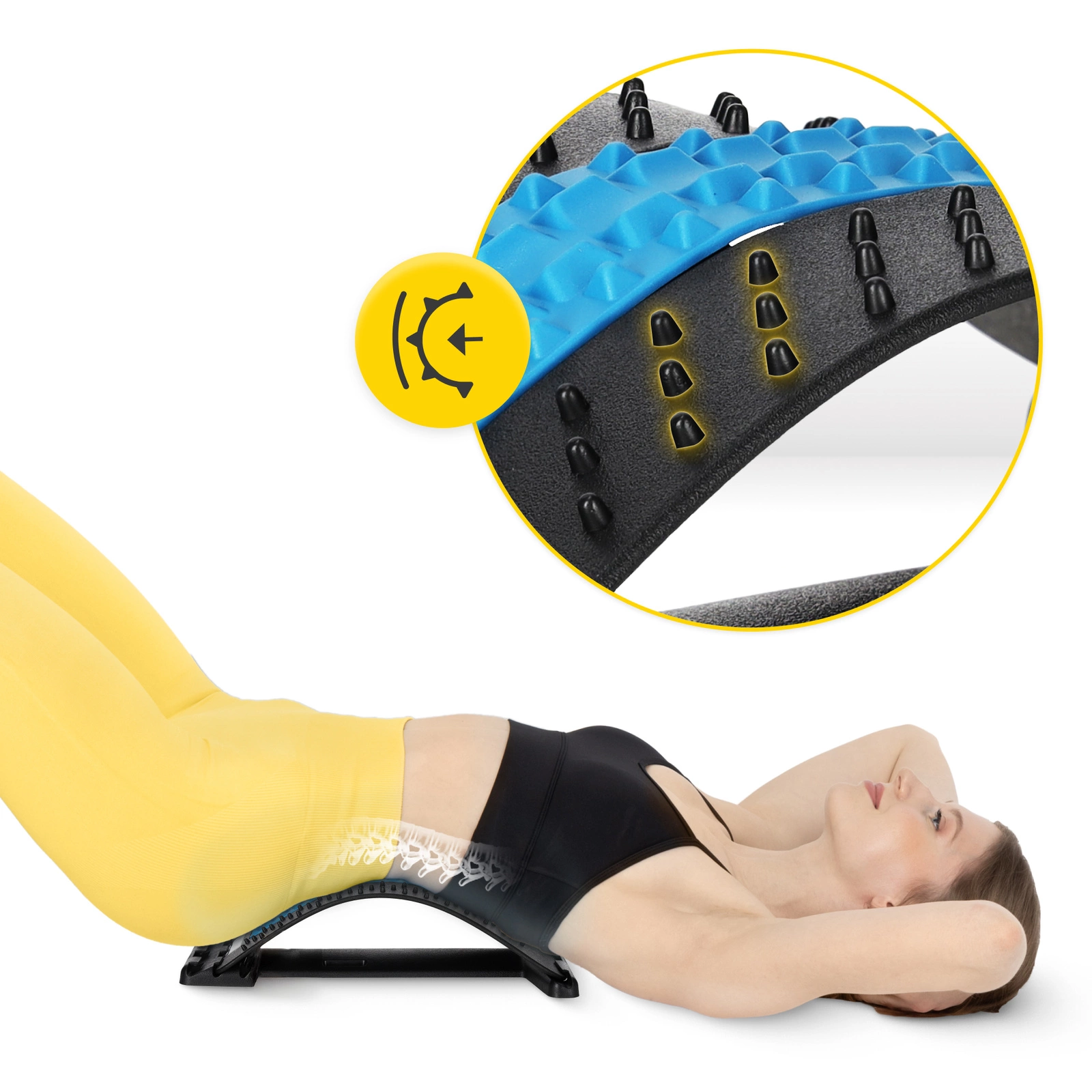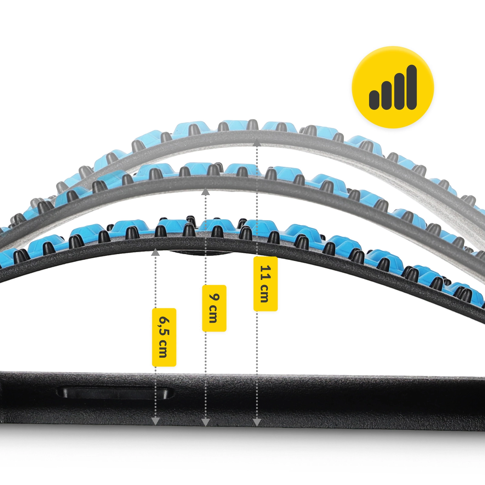 Urządzenie do rozciągania pleców jest proste w użyciu. Wystarczy wybrać poziom wygięcia i położyć się na nim. 3 poziomy regulacji umożliwiają dostosowanie intensywności rozciągania do własnych potrzeb: