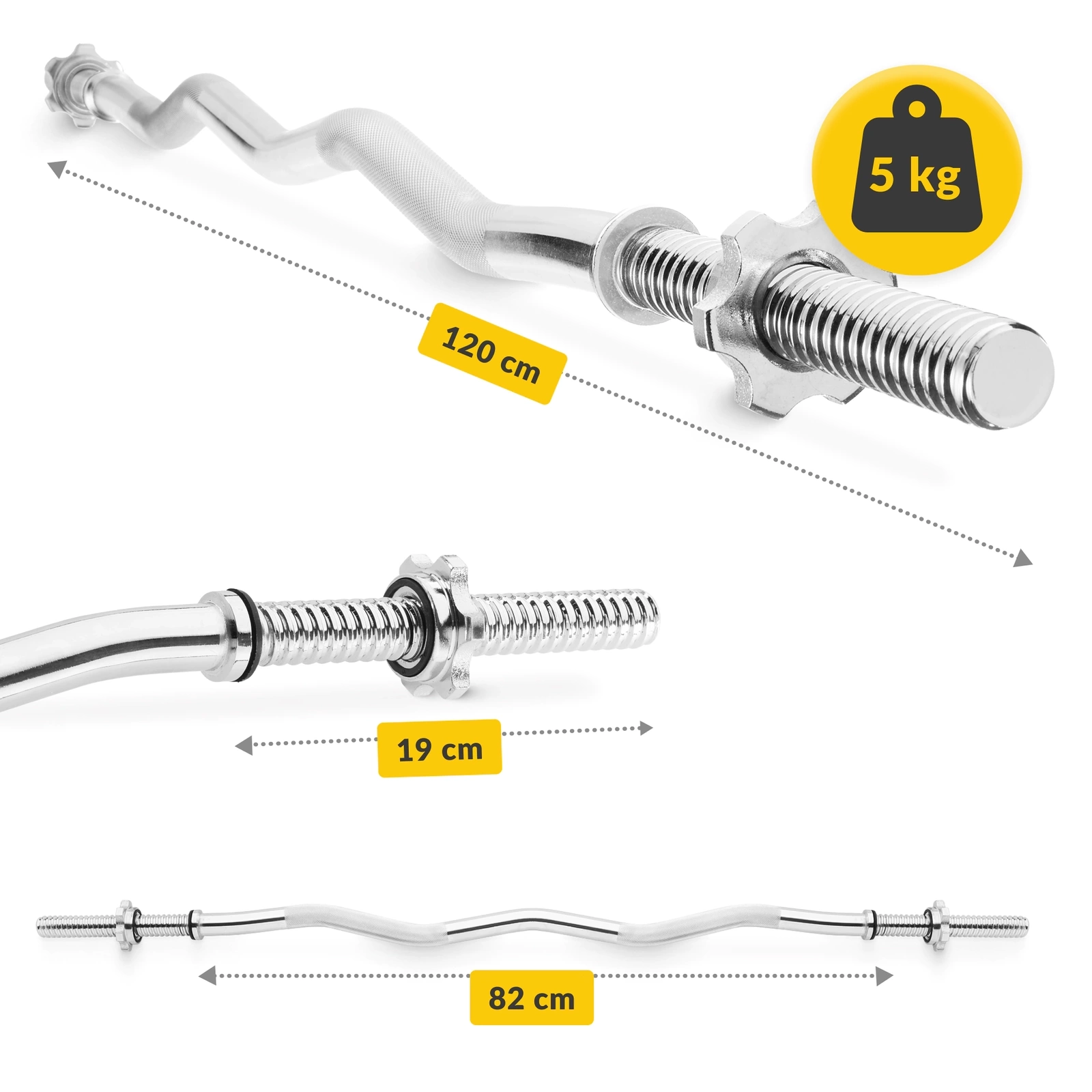 Gryf lekko łamany do ćwiczeń ze sztangą 120 cm 4FIZJO z gwintowanymi zaciskami