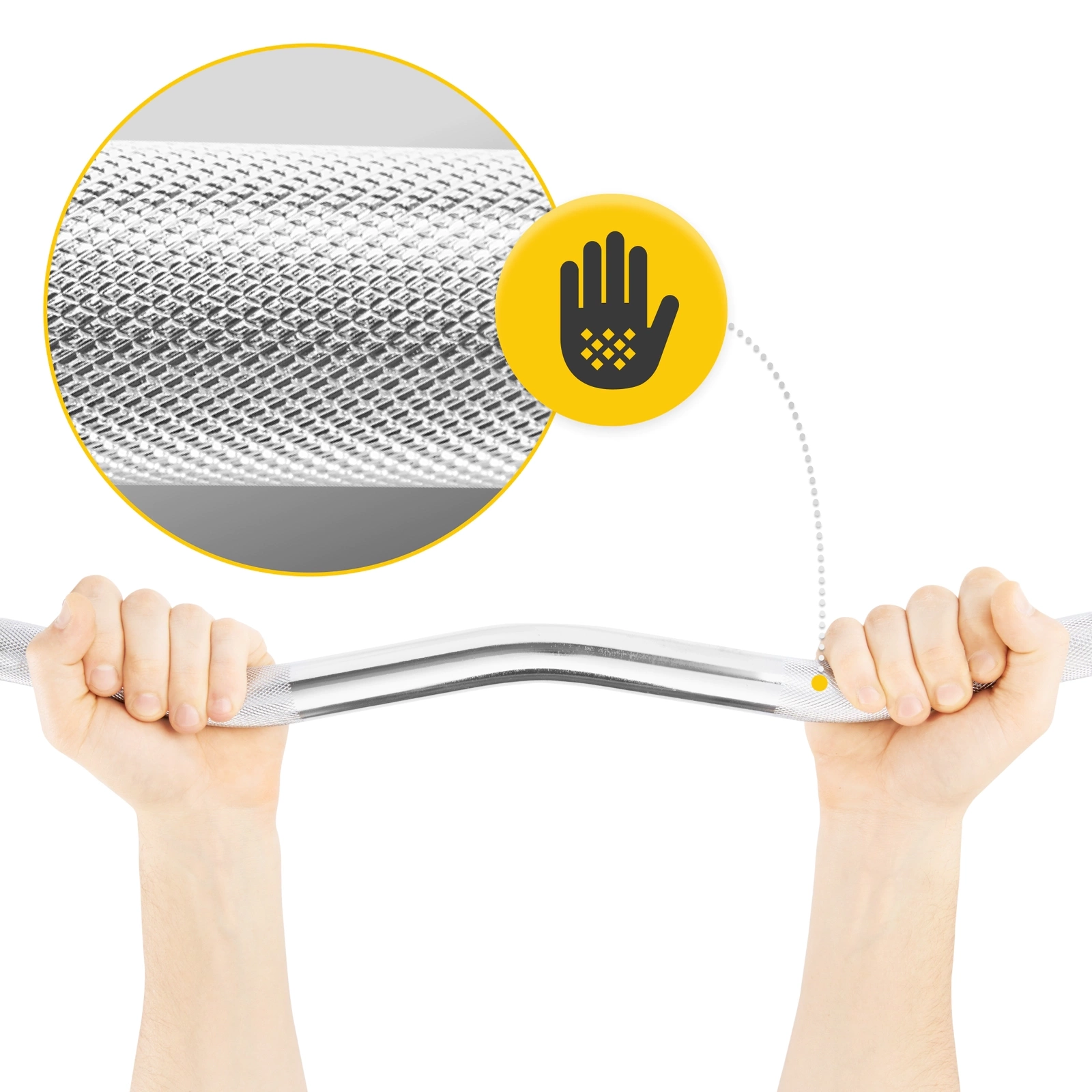 Trenuj na miarę swoich możliwości z gryfem lekko łamanym o długości 120 cm 4FIZJO. Produkt ten został w całości wykonany z wysokogatunkowej stali chromowanej. To sprawia, że cała konstrukcja jest wytrzymała. Tym samym zapewnia on duży udźwig obciążenia bez obaw o powstawanie odkształceń. Komfort treningu zapewniają ryflowane części chwytne. To specjalne antypoślizgowe żłobienie gwarantuje pewny chwyt i zapobiega ślizganiu się rąk.