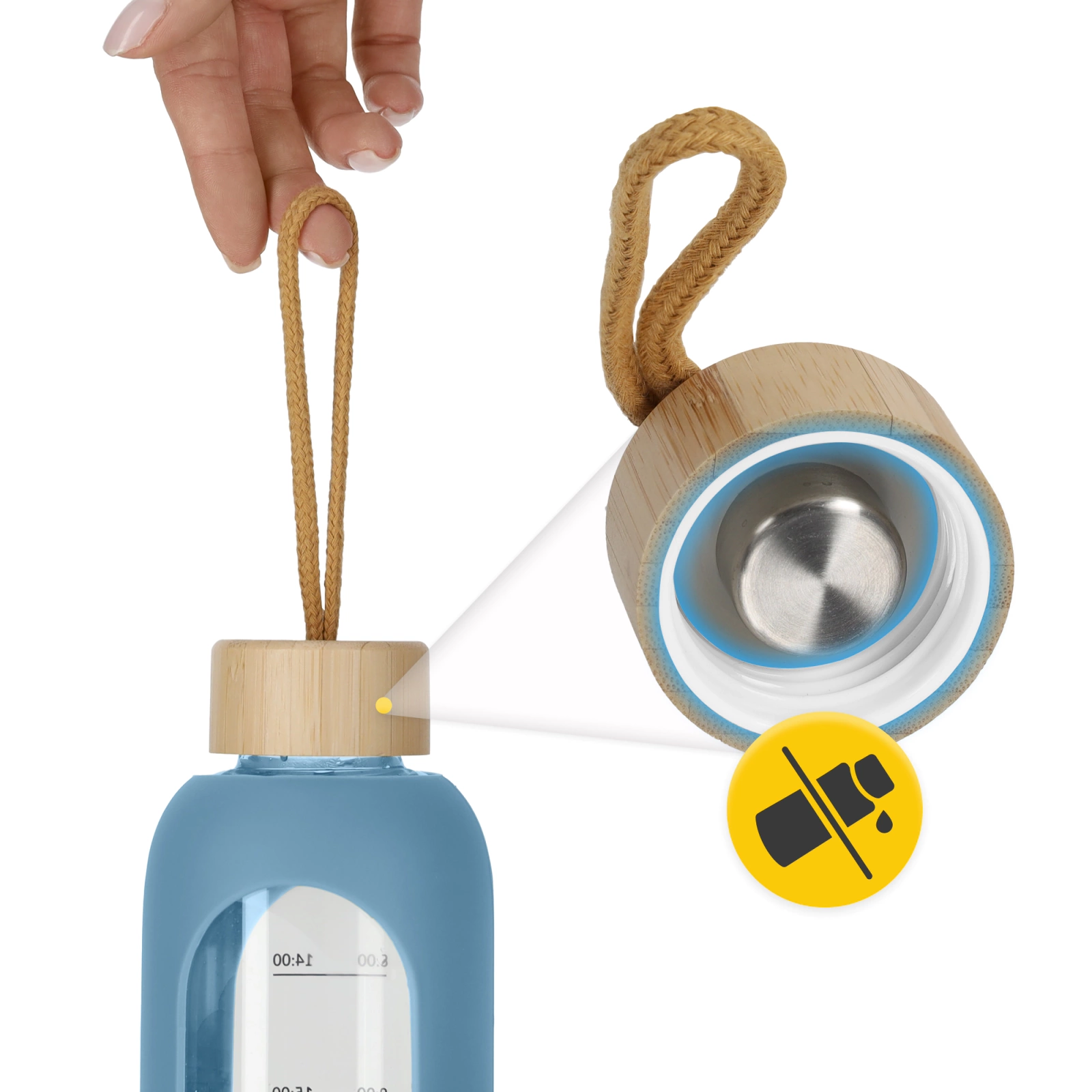 ✅ Butelka na wodę wykonana ze szkła borokrzemowego jest wytrzymała, odporna na stuknięcia i wysokie temperatury.