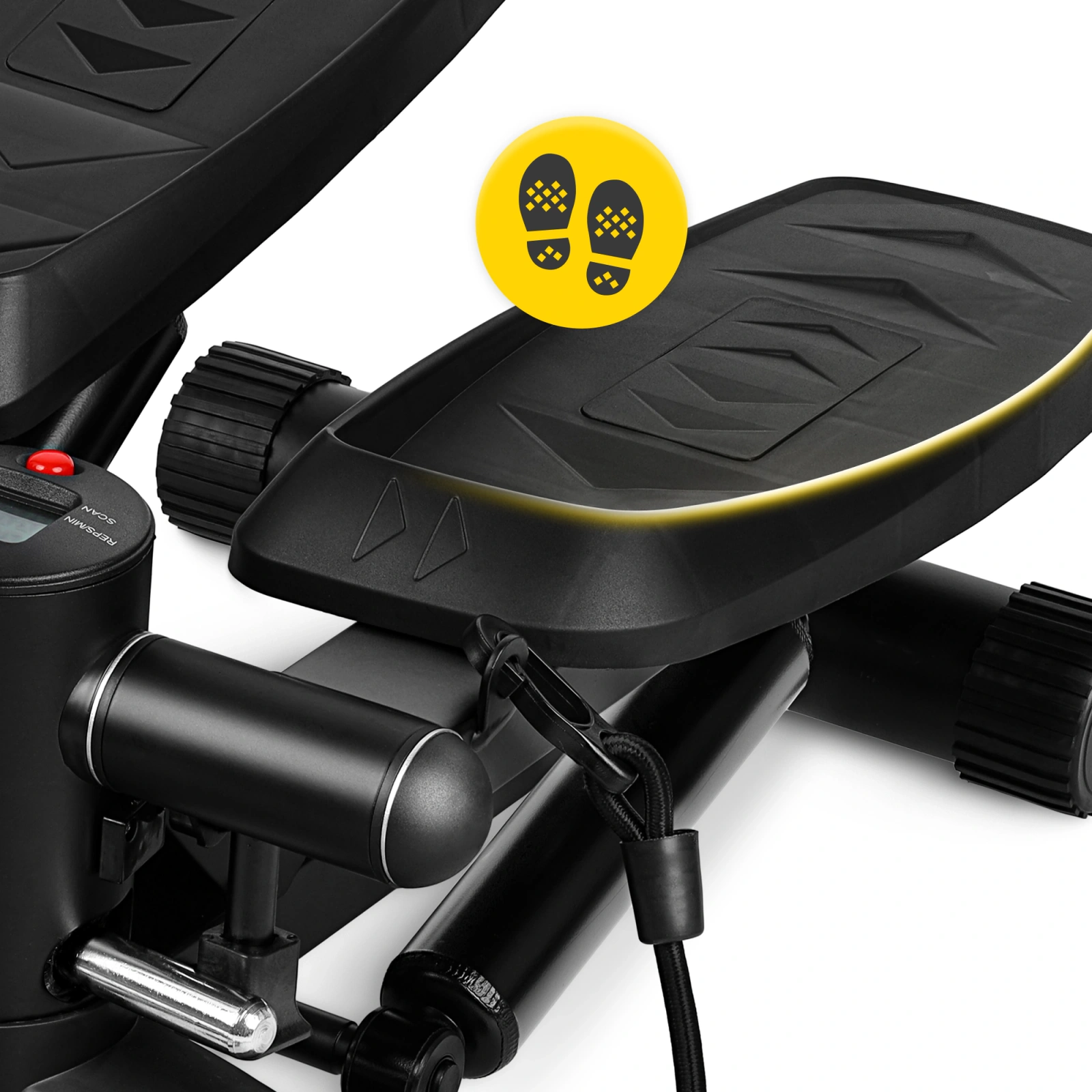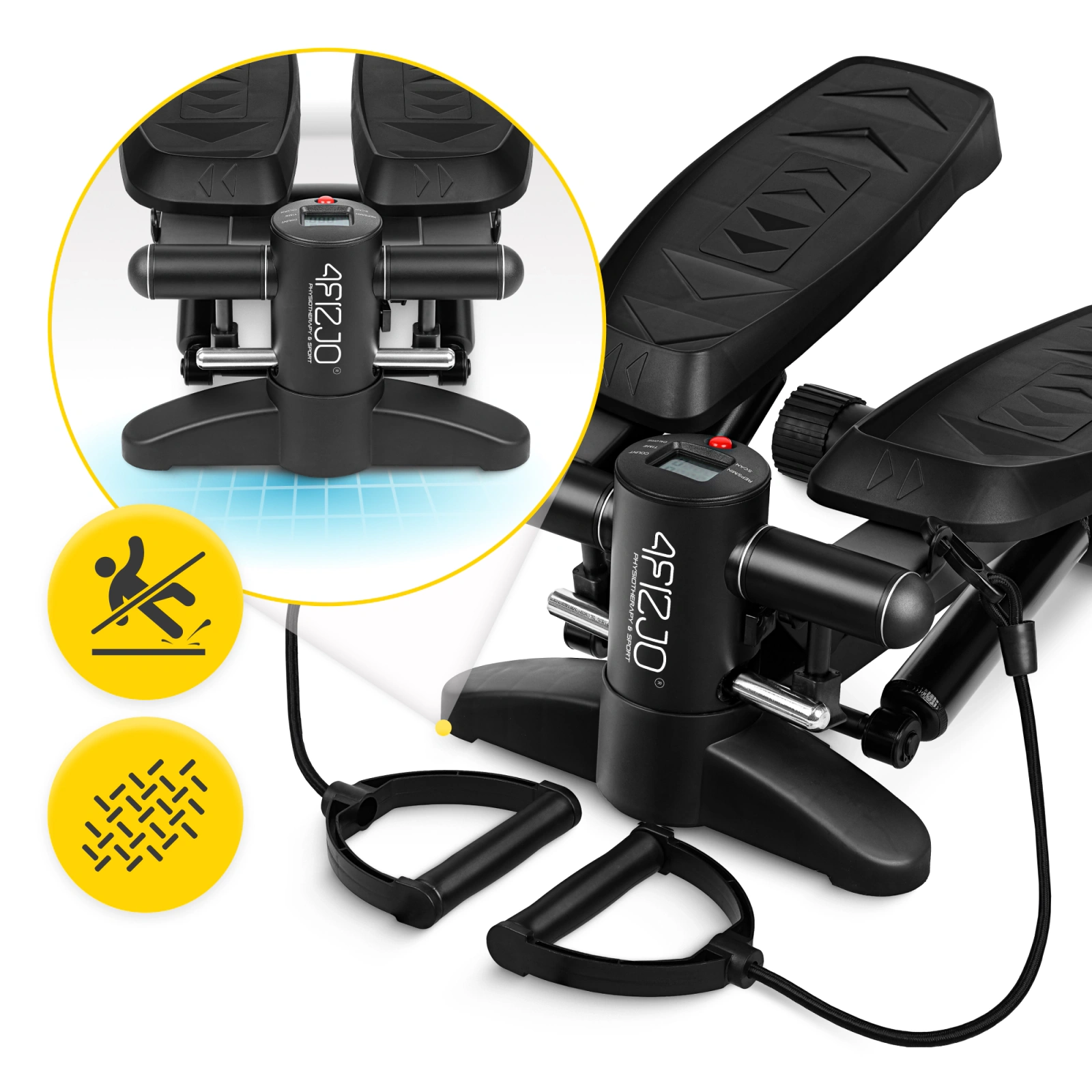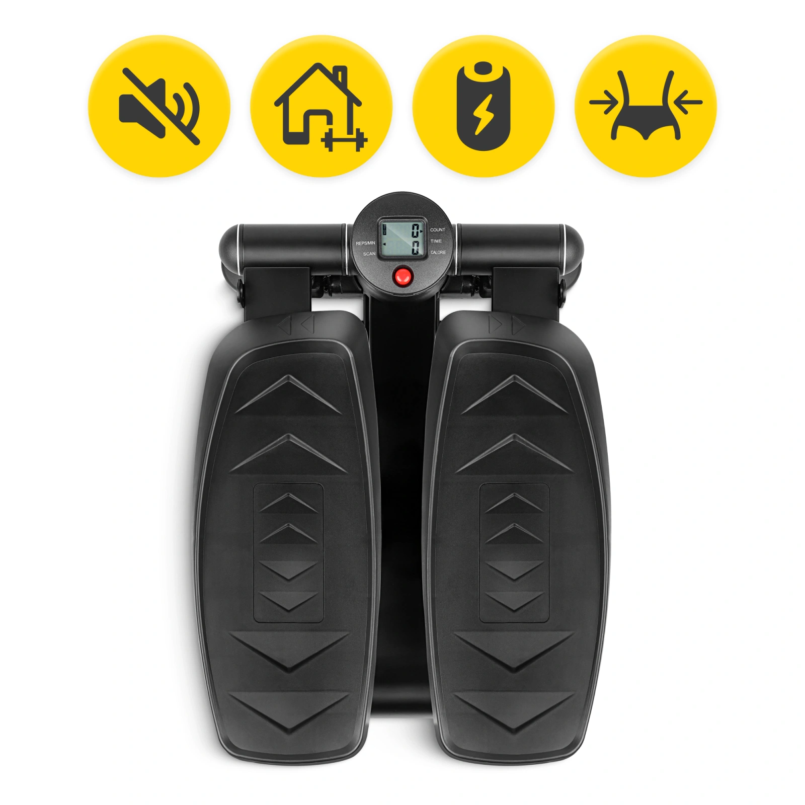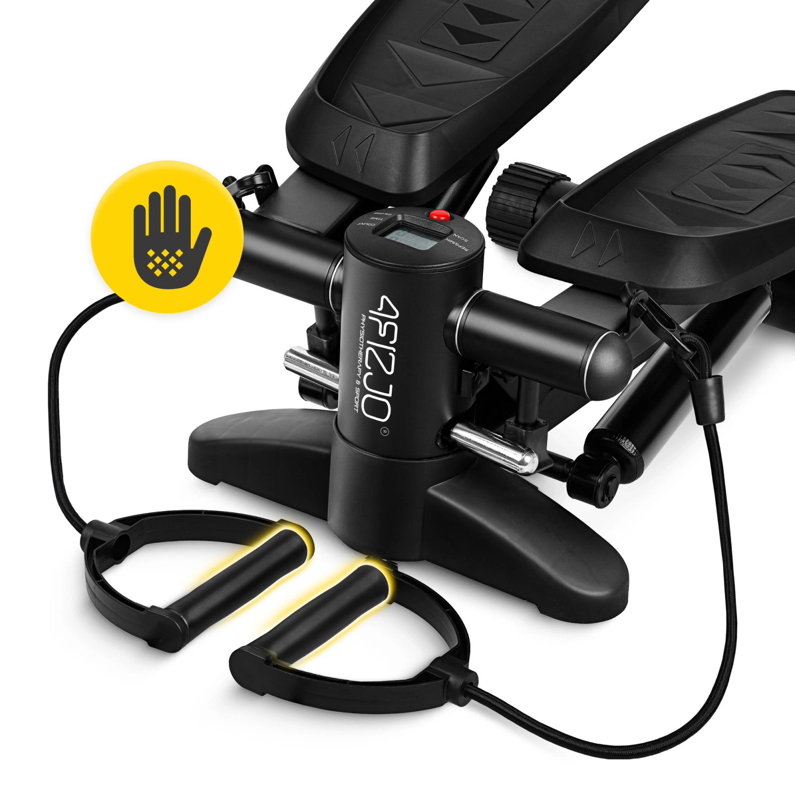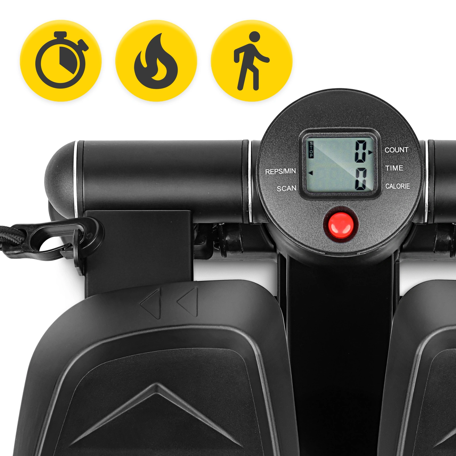 Bez względu na to, jaki jest Twój sportowy cel, osiągniesz go znacznie szybciej, gdy podczas ćwiczeń na stepperze będziesz kontrolować swoje parametry. Jest to niezwykle łatwe, dzięki licznikowi, który zapewnia do nich swobodny dostęp. Na ekranie zobaczysz: czas treningu, przebyty dystans, liczbę kroków, całkowitą liczbę kroków oraz spalone kalorie. A gdy nie chcesz rozpraszać swojej uwagi sterowaniem ekranu, możesz włączyć opcję scan, która w sposób automatyczny będzie naprzemiennie wyświetlać wszystkie dostępne obliczenia. I właśnie w taki sposób trenuje się efektywnie i wygodnie.
