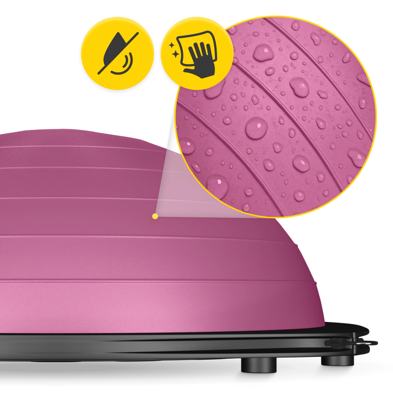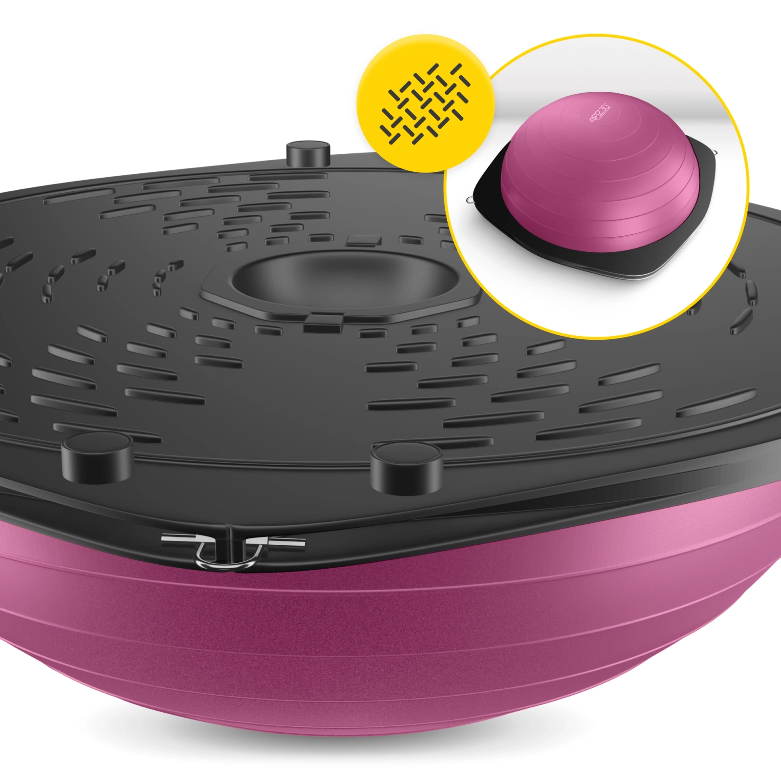 Półpiłka Balance Ball 4FIZJO to połączenie połowy piłki gimnastycznej z platformą do balansowania. Taka budowa to szereg korzyści – obie strony umożliwiają przeprowadzenie urozmaiconego treningu. Półokrągłą kopułę i podstawę wykonano z jakościowego tworzywa zapewniającego wytrzymałość. Antypoślizgowe rozwiązania, jak nóżki czy specjalne owalne linie, zapewniają bezpieczeństwo podczas ćwiczeń. Chronią przed poślizgnięciem się oraz zapobiegają przesuwaniu się półpiłki typu bosu w trakcie aktywności fizycznej. W zestawie z trenerem równowagi znajdują się 2 odpinane ekspandery i pompka.