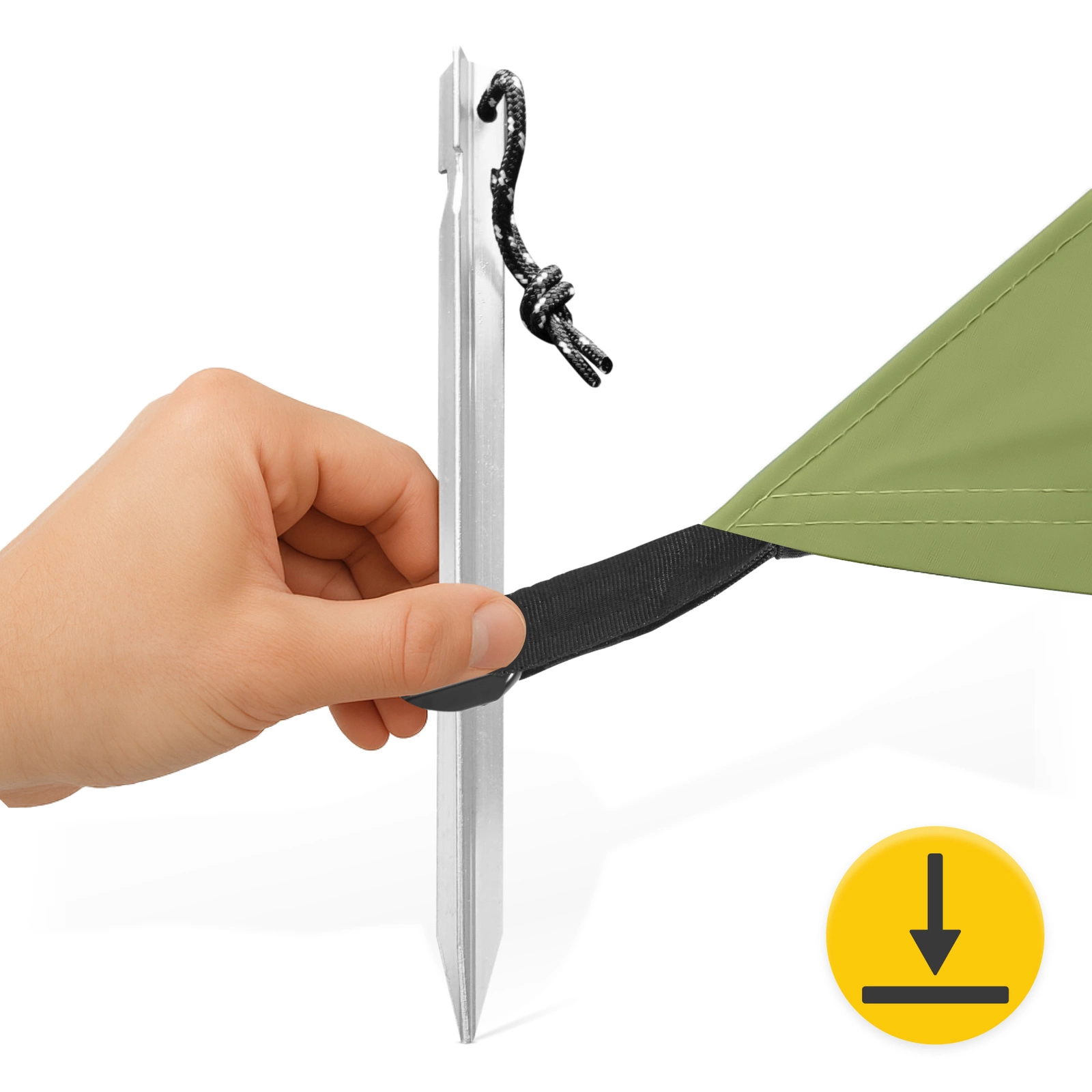 ▶️ Przymocuj płachtę do podłoża za pomocą kołków lub linek. Naciągnij każdy narożnik równomiernie.