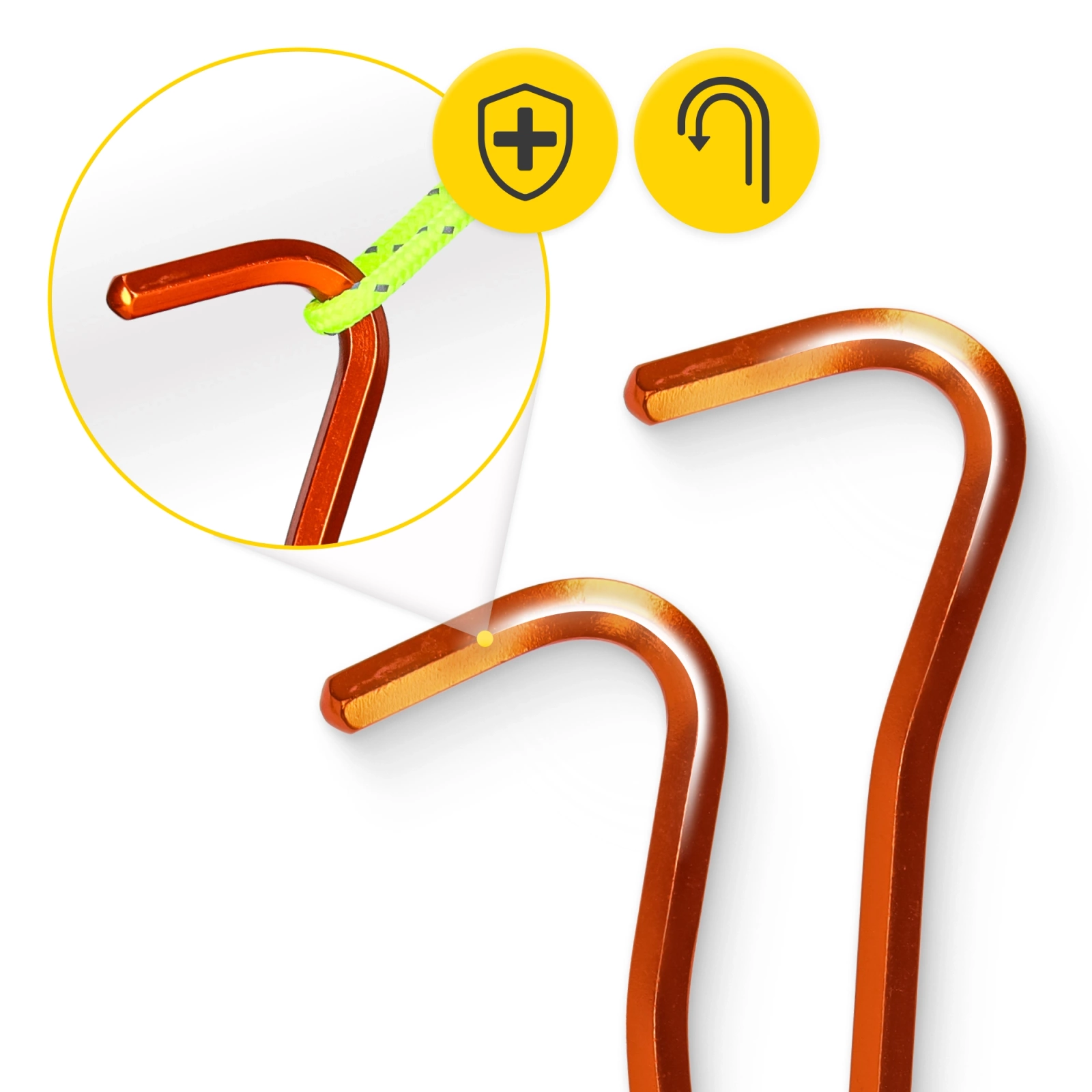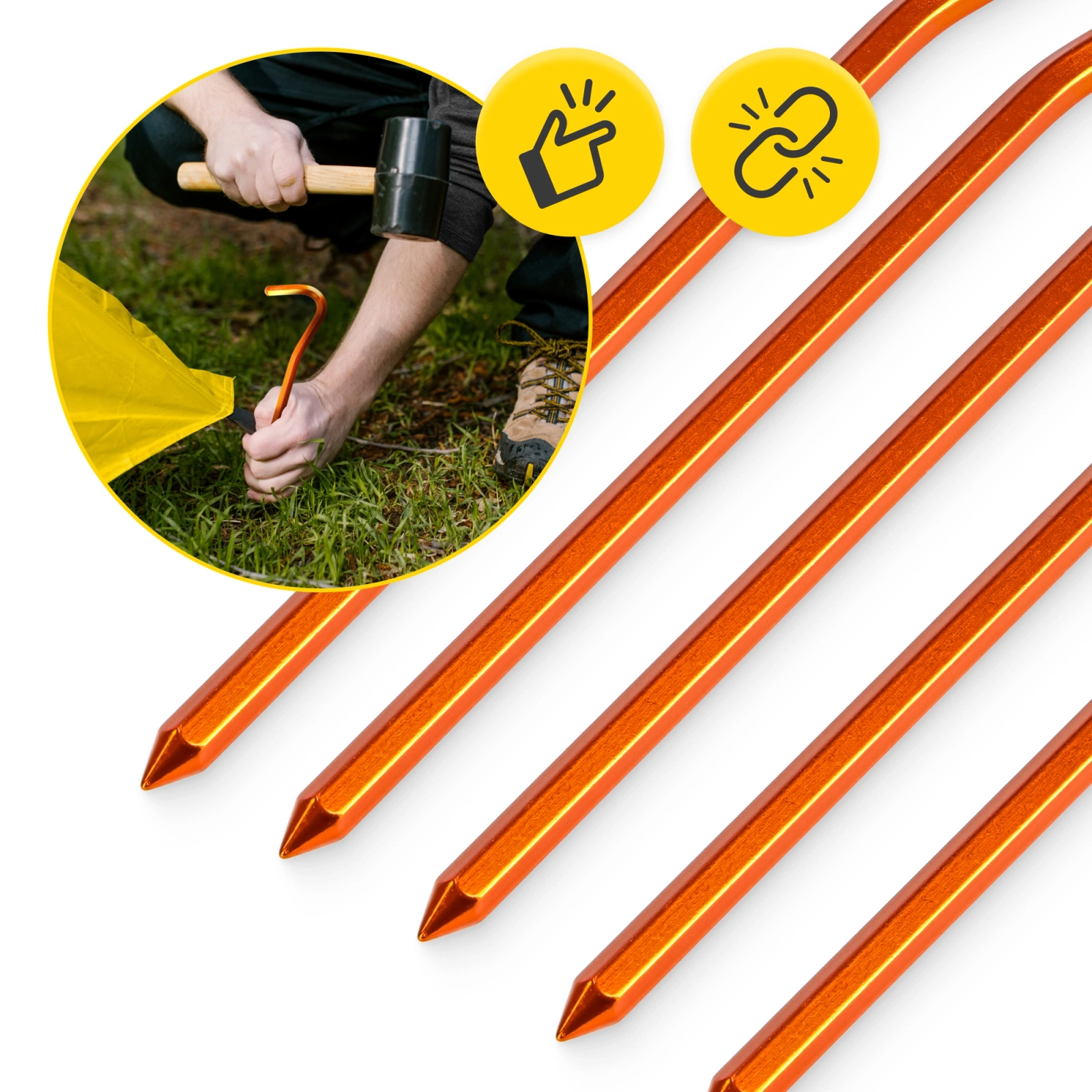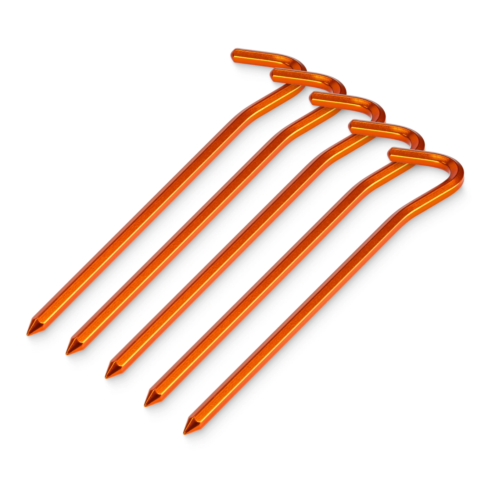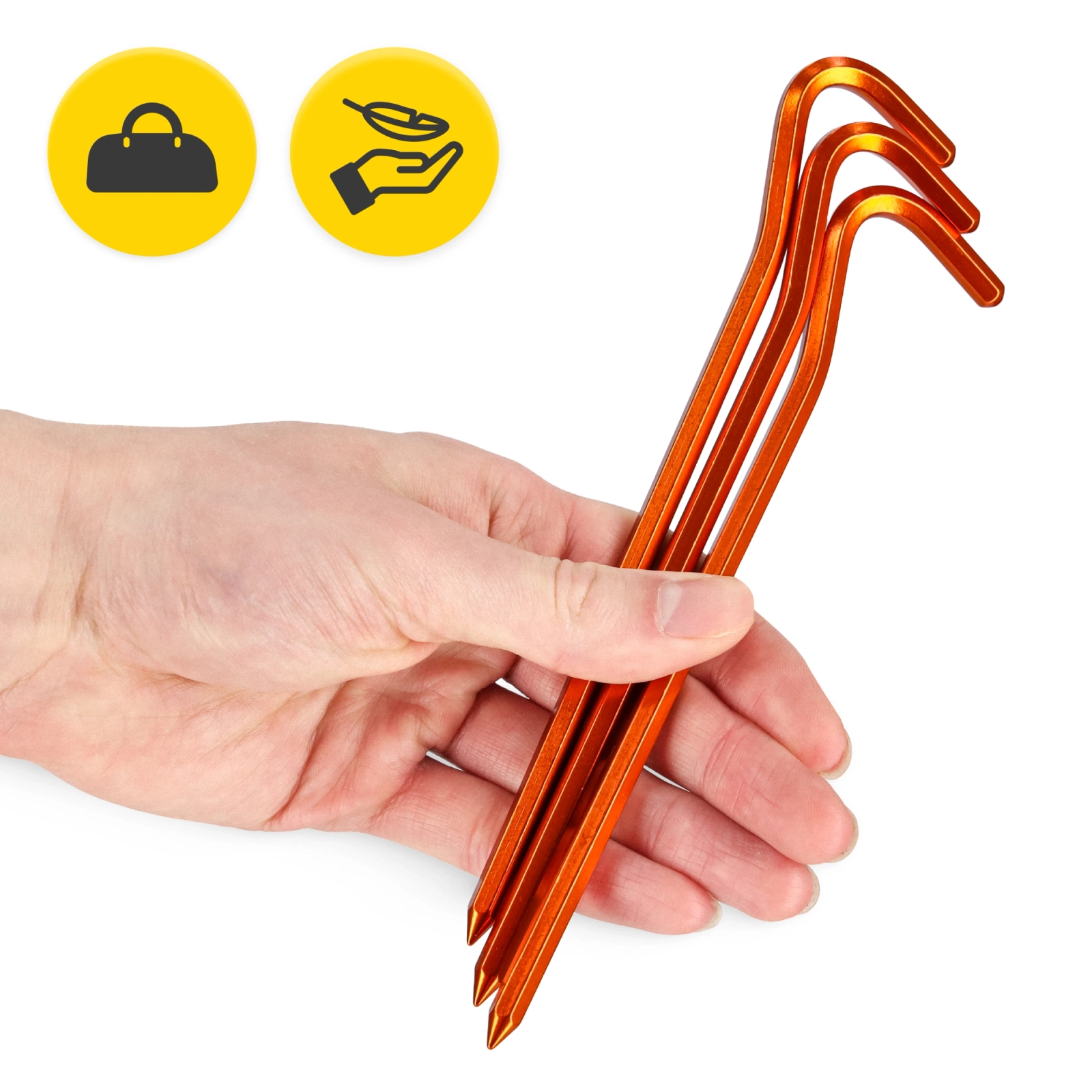 Sześciokątny przekrój zwiększa sztywność i zmniejsza ryzyko wygięcia w twardej ziemi. Anodyzowane wykończenie poprawia odporność na ścieranie i sprawia, że szpilki są dobrze widoczne. To świetna opcja na wyprawy górskie, rowerowe czy kajakowe.
