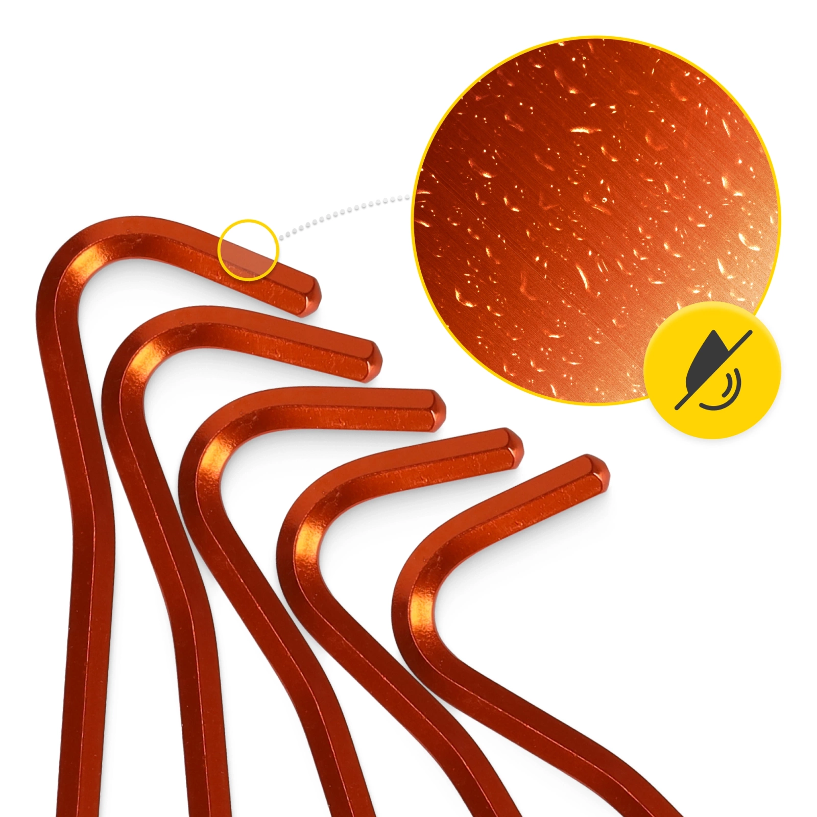 - Materiał: aluminium anodowane (pomarańczowe)