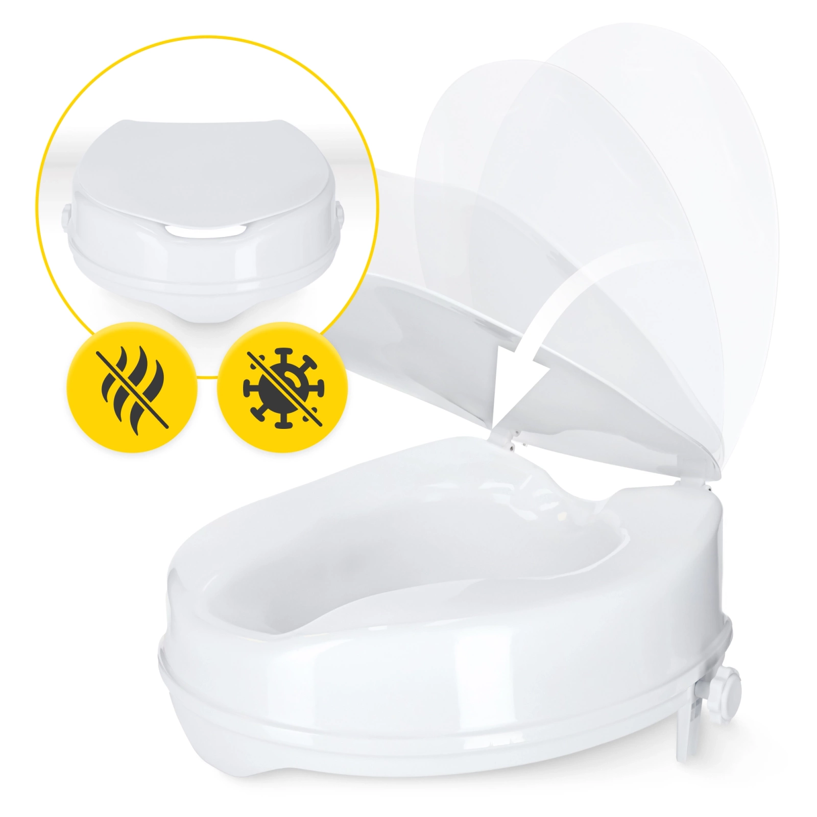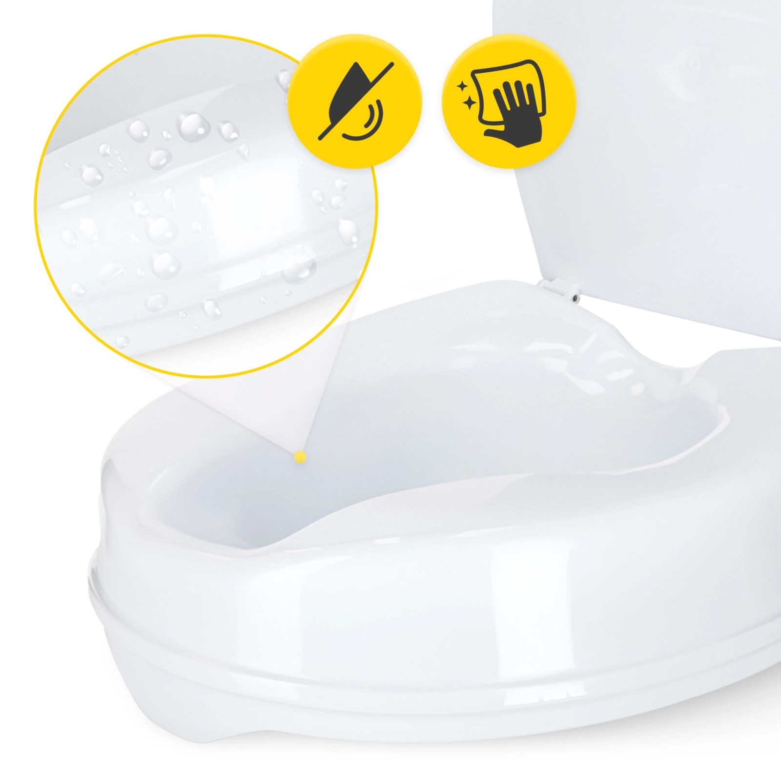 Dostępne w trzech wysokościach podwyższenia – co pozwala dobrać wersję najlepiej dopasowaną do potrzeb i poziomu sprawności. Ergonomiczny kształt siedziska oraz dwa strategiczne wycięcia (z przodu i z tyłu) ułatwiają wykonywanie czynności higienicznych bez konieczności przyjmowania niewygodnej pozycji.