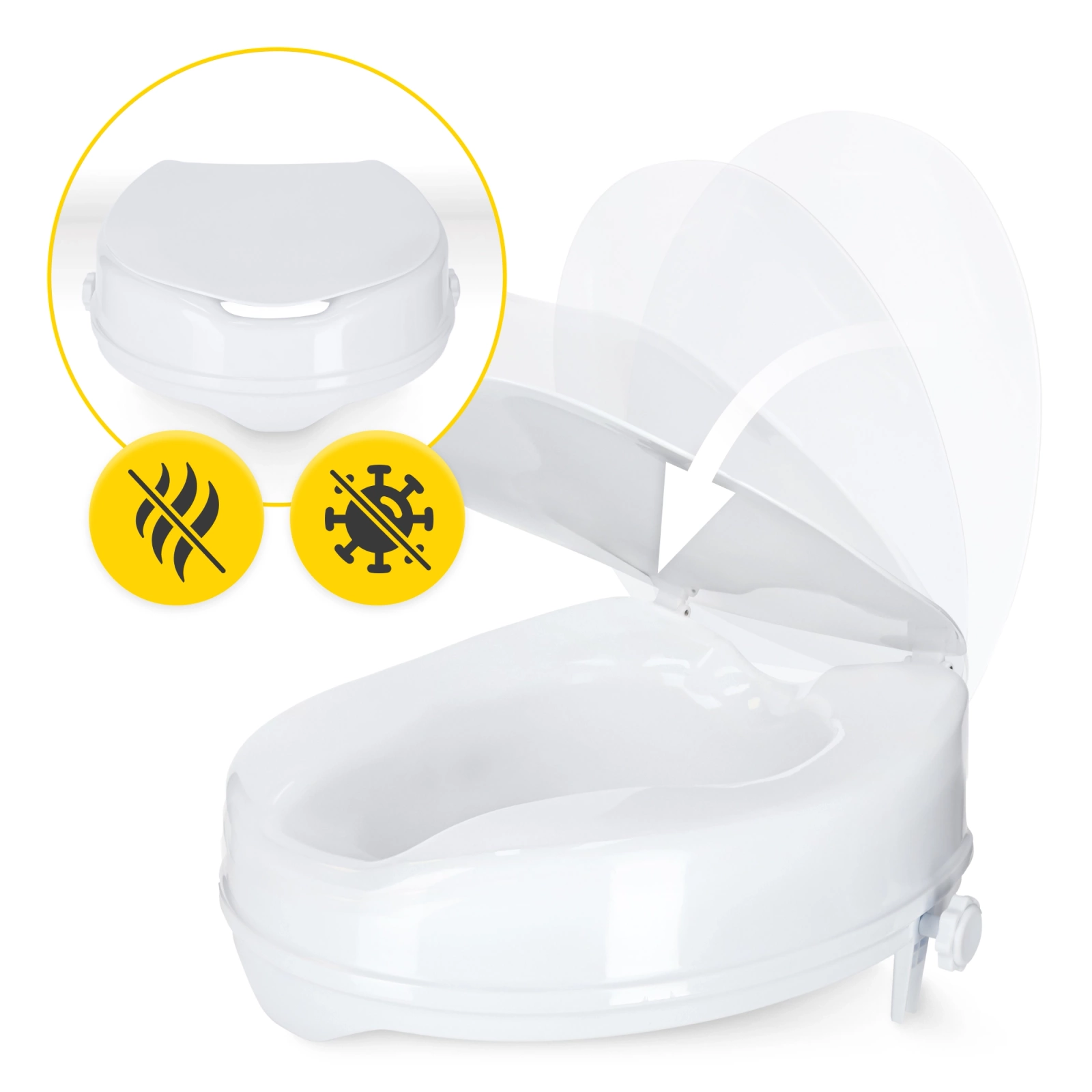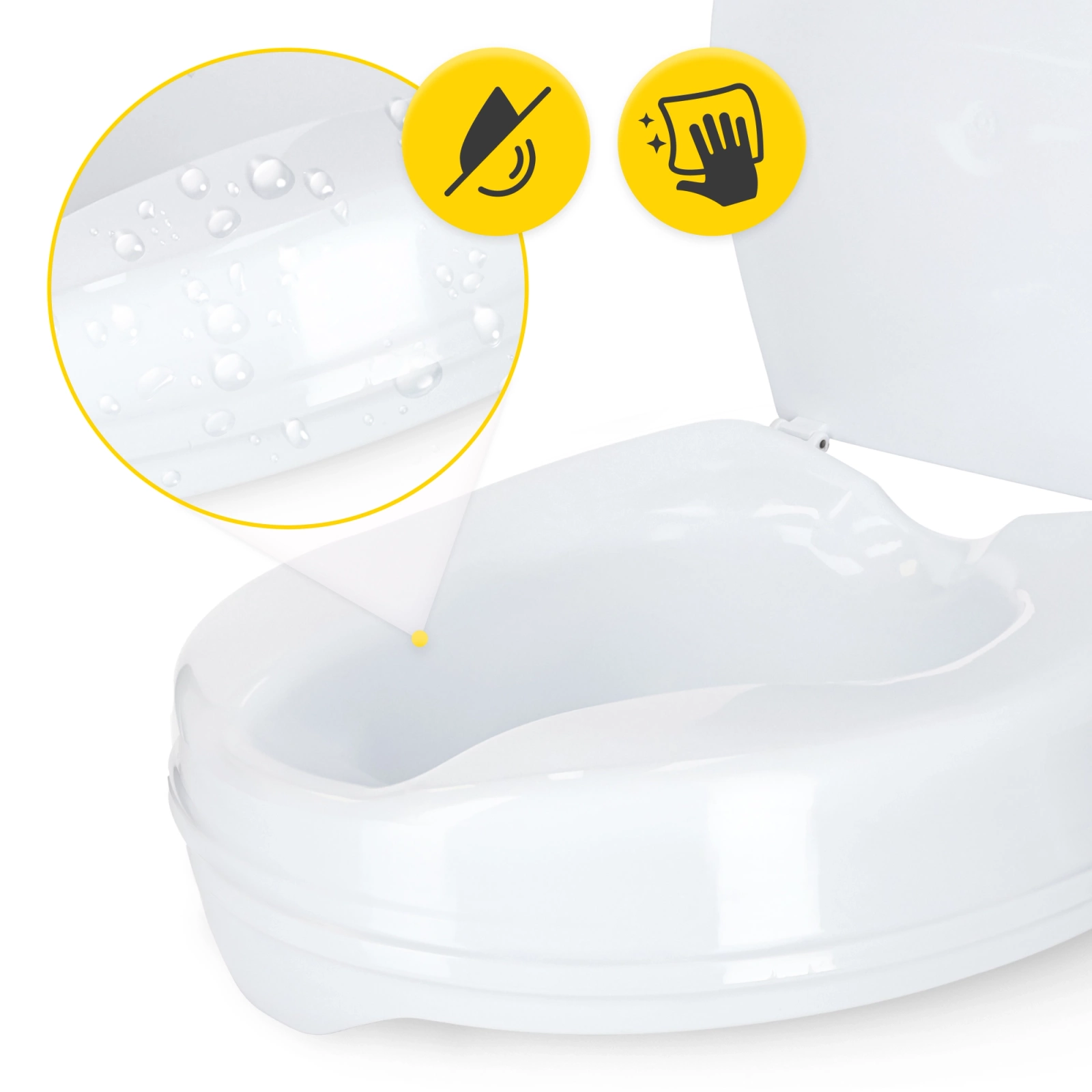 Dostępne w trzech wysokościach podwyższenia – co pozwala dobrać wersję najlepiej dopasowaną do potrzeb i poziomu sprawności. Ergonomiczny kształt siedziska oraz dwa strategiczne wycięcia (z przodu i z tyłu) ułatwiają wykonywanie czynności higienicznych bez konieczności przyjmowania niewygodnej pozycji.