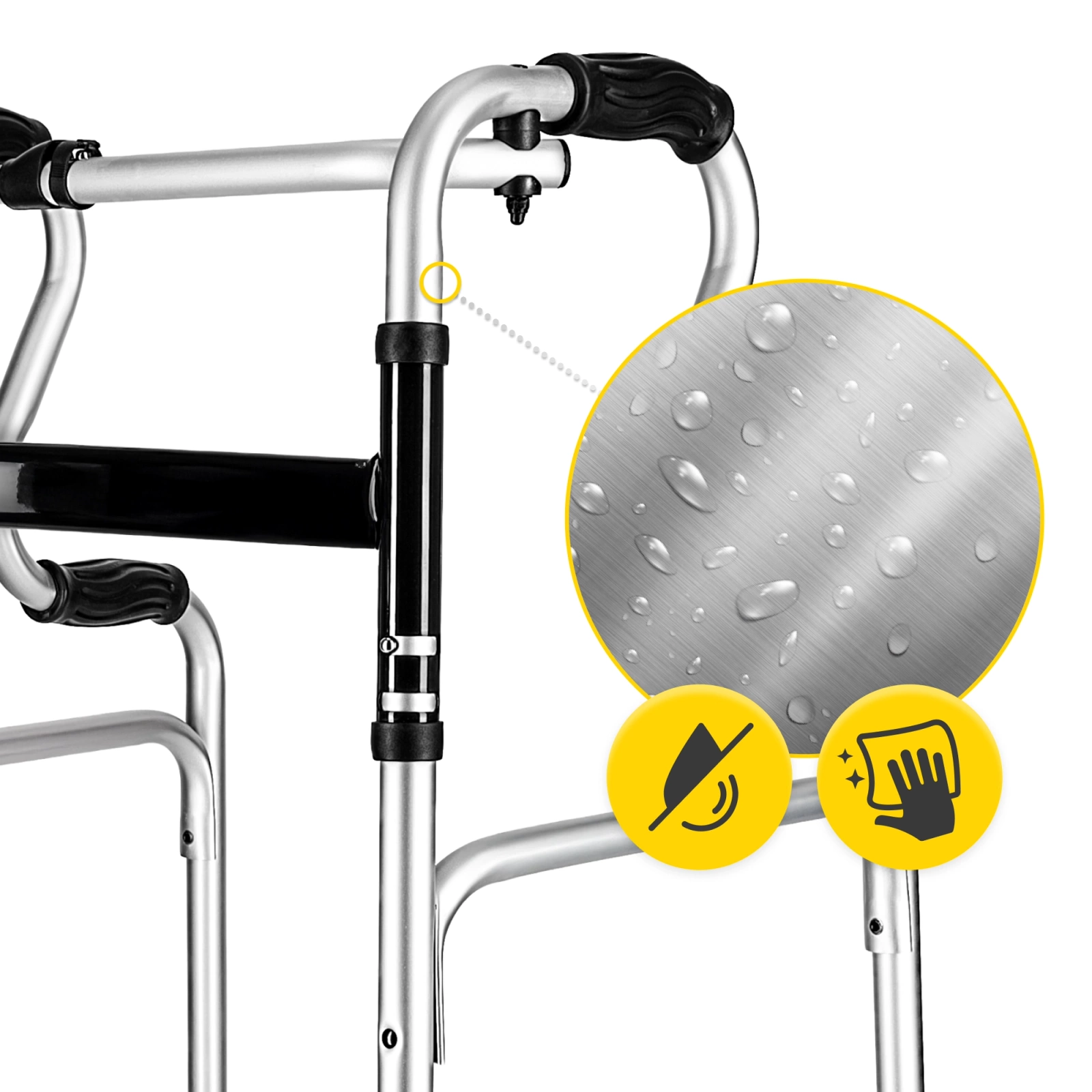 Rama wykonana z odpornego na korozję aluminium waży zaledwie 3 kg. Dzięki funkcji składania jednym przyciskiem balkonik jest niezwykle wygodny w transporcie i przechowywaniu.