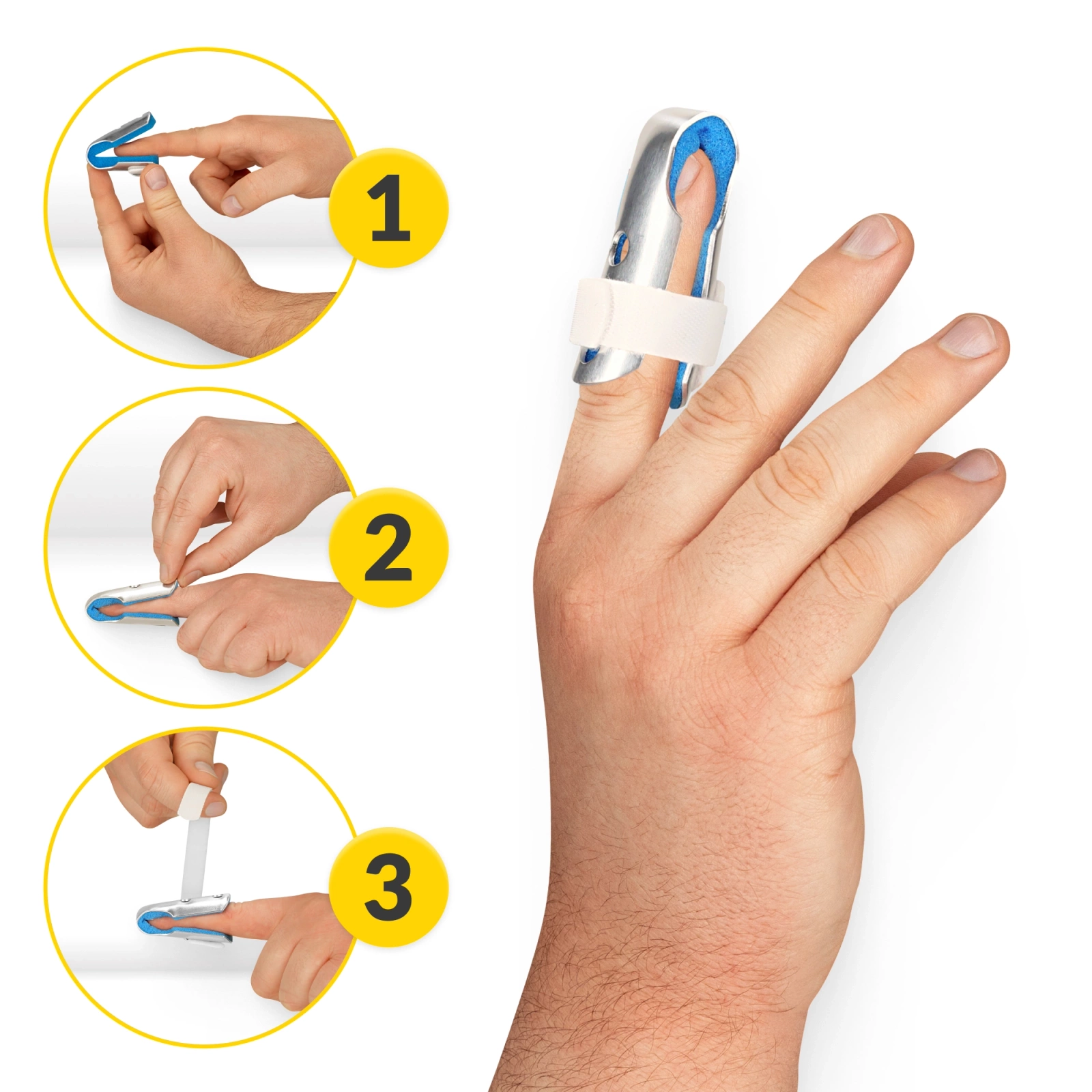 ➡️Łatwe zakładanie – zakładanie szyny na palec 4FIZJO nie jest skomplikowane. Po prostu umieść szynę na palcu w taki sposób, aby pokrywała ona tę część, która wymaga unieruchomienia. Następnie dopasuj odpowiednio ucisk przy użyciu zapinanych na rzep pasków. Gotowe!