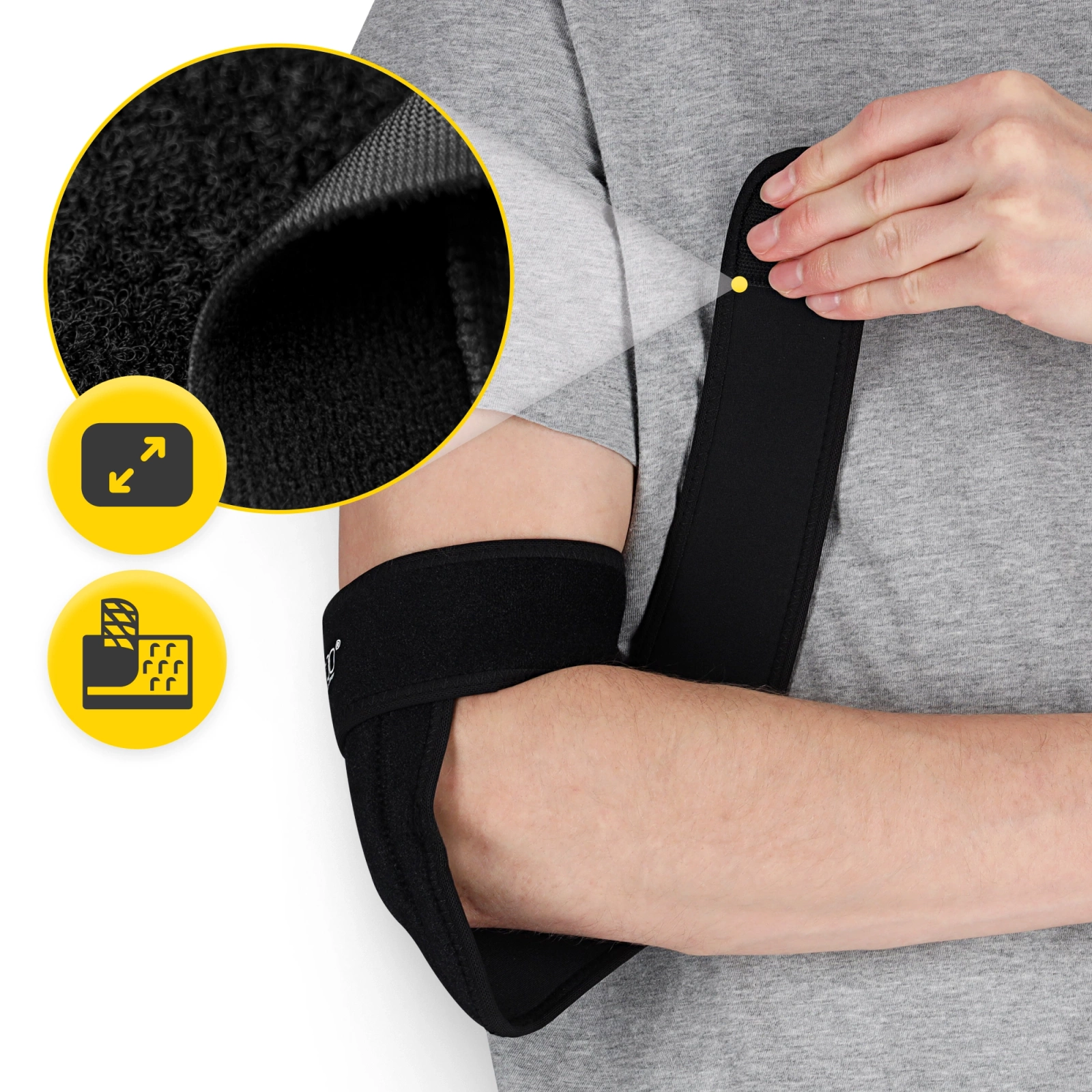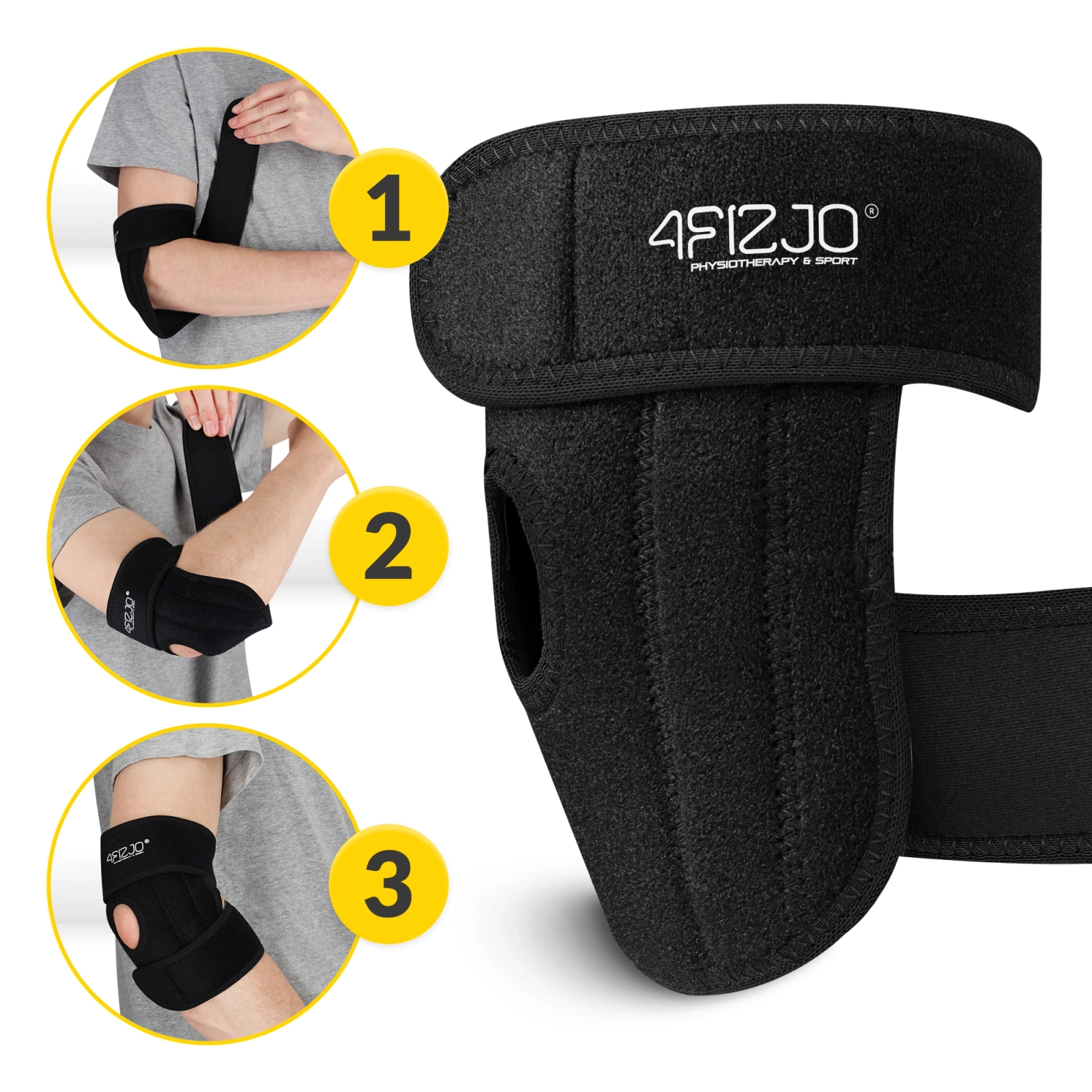 ➡️Idealne dopasowanie – dzięki temu, że opaska na łokieć 4FIZJO jest lekko elastyczna, z łatwością dopasowuje się ona do ciała, nie wywołując dyskomfortu.