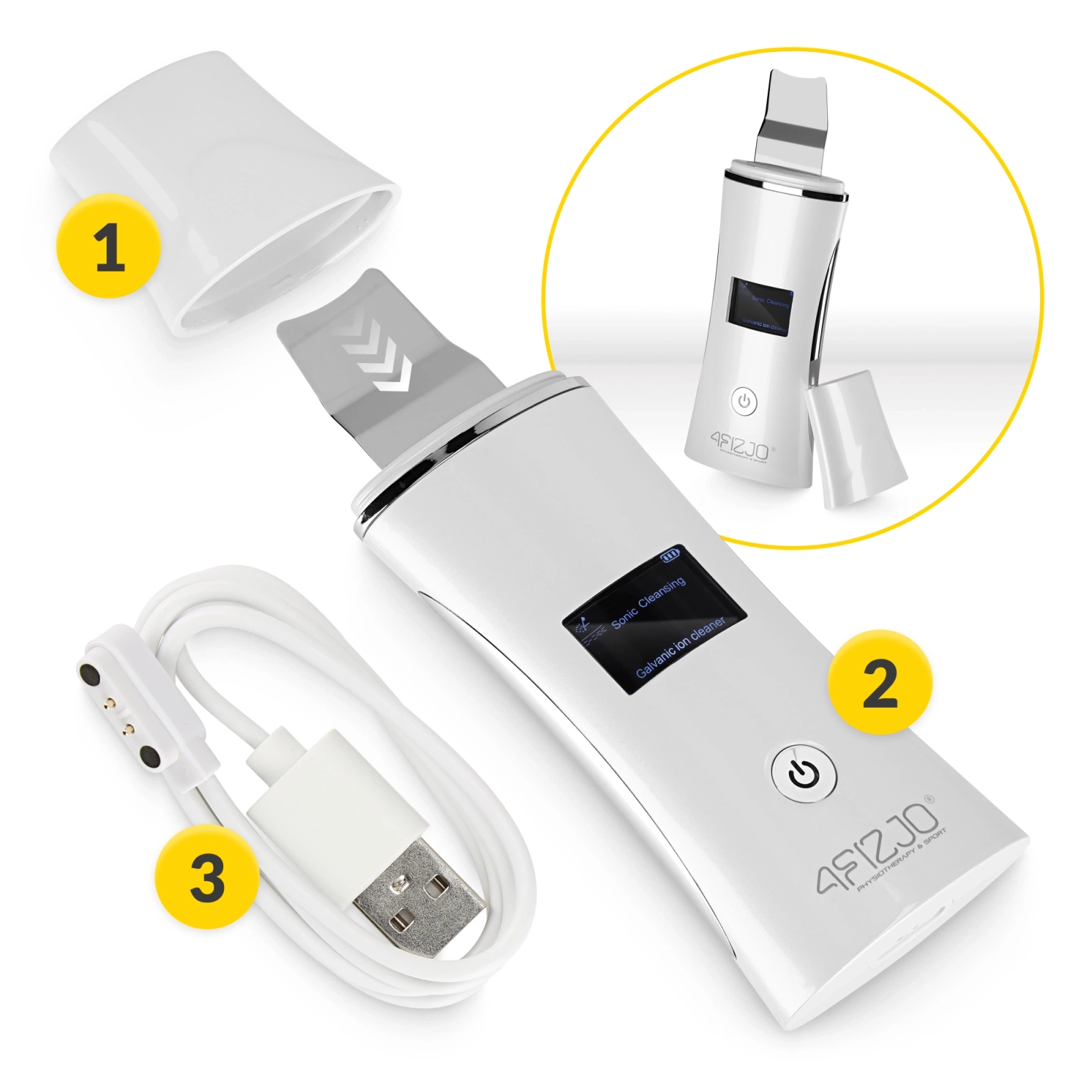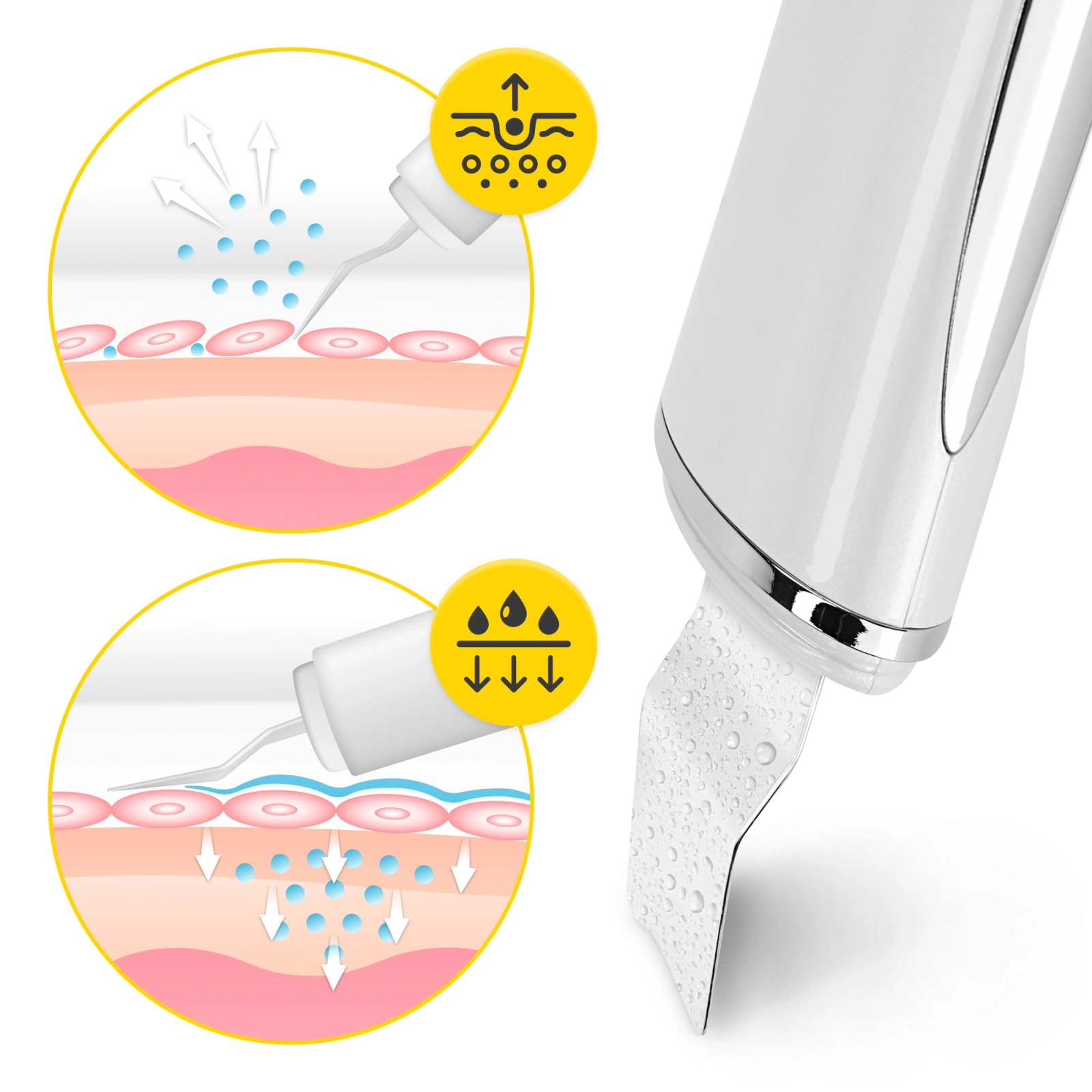 Urządzenie wyposażono w specjalną, podwójnie zgiętą łopatkę, która idealnie dopasowuje się do kształtu twarzy. To właśnie za jej sprawą każdy zabieg peelingu kawitacyjnego jest niezwykle wygodny!