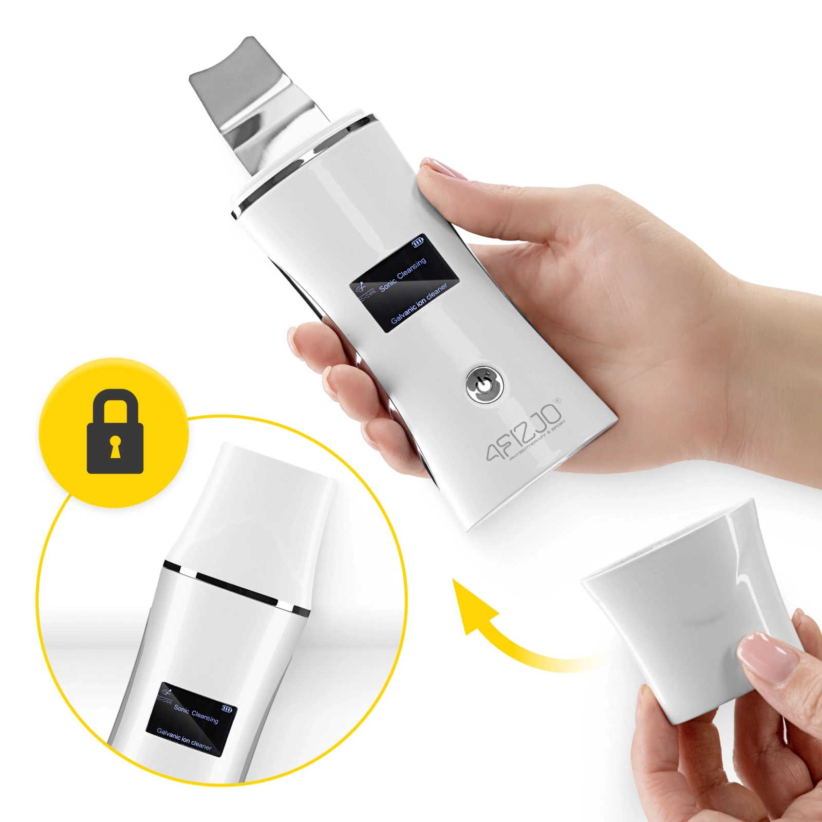 Za sprawą wysokiej klasy wodoodporności IPX5 nic nie stoi na przeszkodzie, aby bezpiecznie stosować peeling kawitacyjny 4FIZJO w łazience. Odporność na zachlapania oraz wilgoć pozwoli Ci pielęgnować twarz w komfortowych i bezpiecznych warunkach.