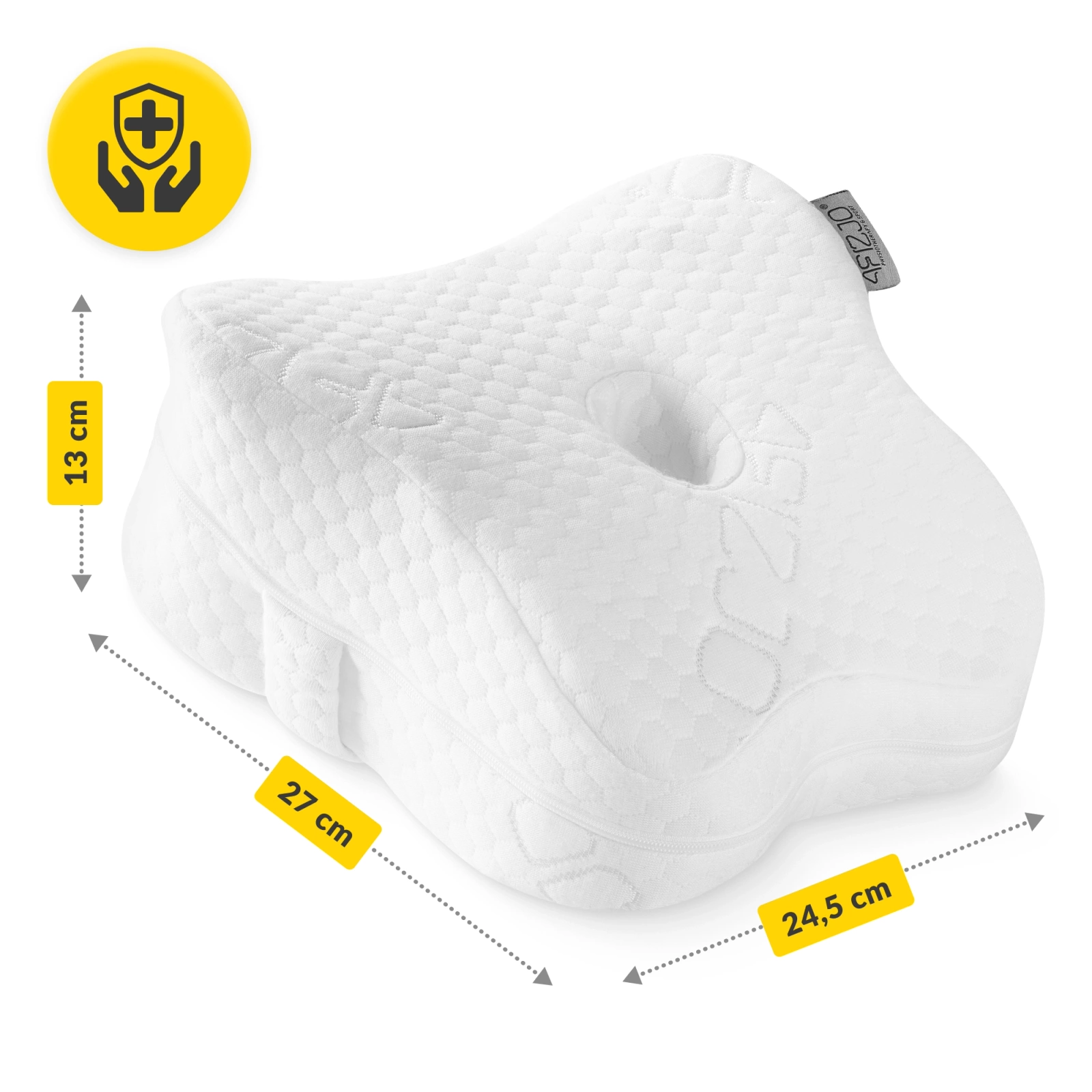 Kolejną zaletą poduszki ortopedycznej między nogi PRO 4FIZJO jest fakt, że nie sprawia ona problemów w utrzymaniu czystości. Wręcz przeciwnie – w dowolnej chwili wypierzesz zdejmowany pokrowiec, kierując się informacjami dostępnymi na instrukcji.