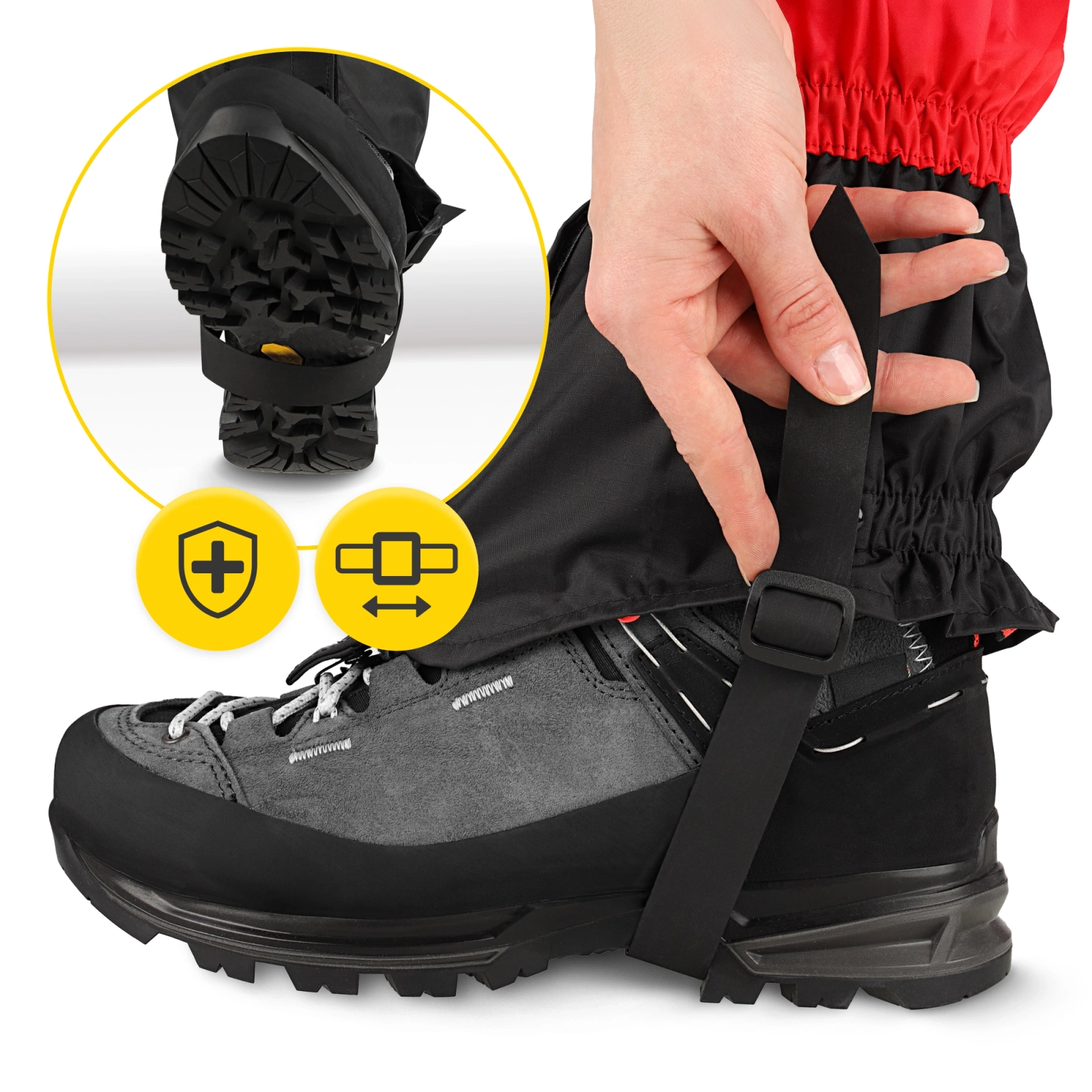 Wybierając stuptuty MOUNTAIN GOAT, masz pewność, że z łatwością dopasują się one do rodzaju Twojego obuwia. To zasługa elastycznych ściągaczy oraz regulowanych pasków.