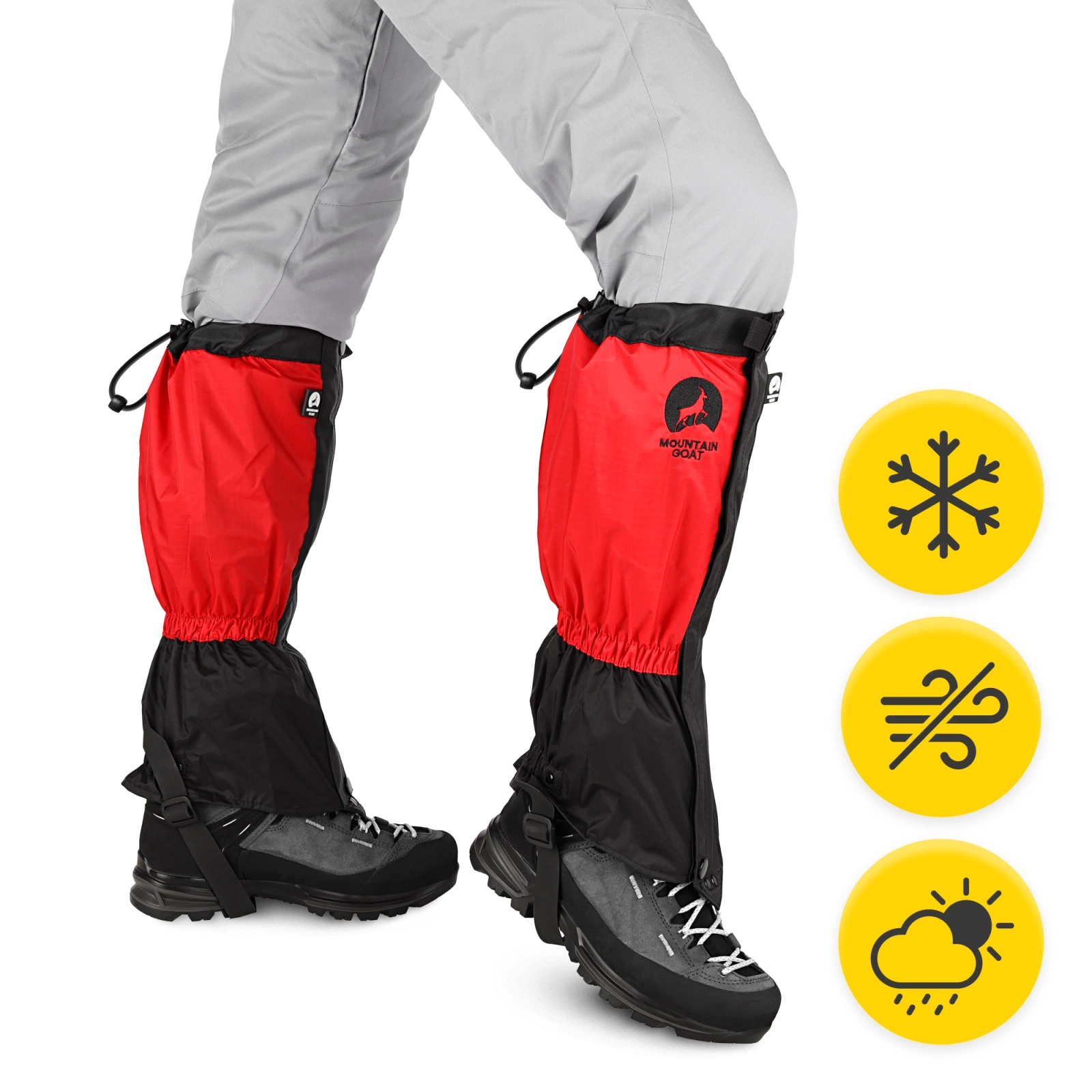 Przeciwśnieżne stuptuty turystyczne MOUNTAIN GOAT są nieodłącznym elementem aktywności w gorszych warunkach pogodowych. Za sprawą wodoodpornego i wiatroodpornego materiału stuptuty doskonale chronią przed wilgocią oraz wiatrem. Ochraniacze na buty turystyczne tego typu to zatem strzał w dziesiątkę dla każdego aktywnego turysty.