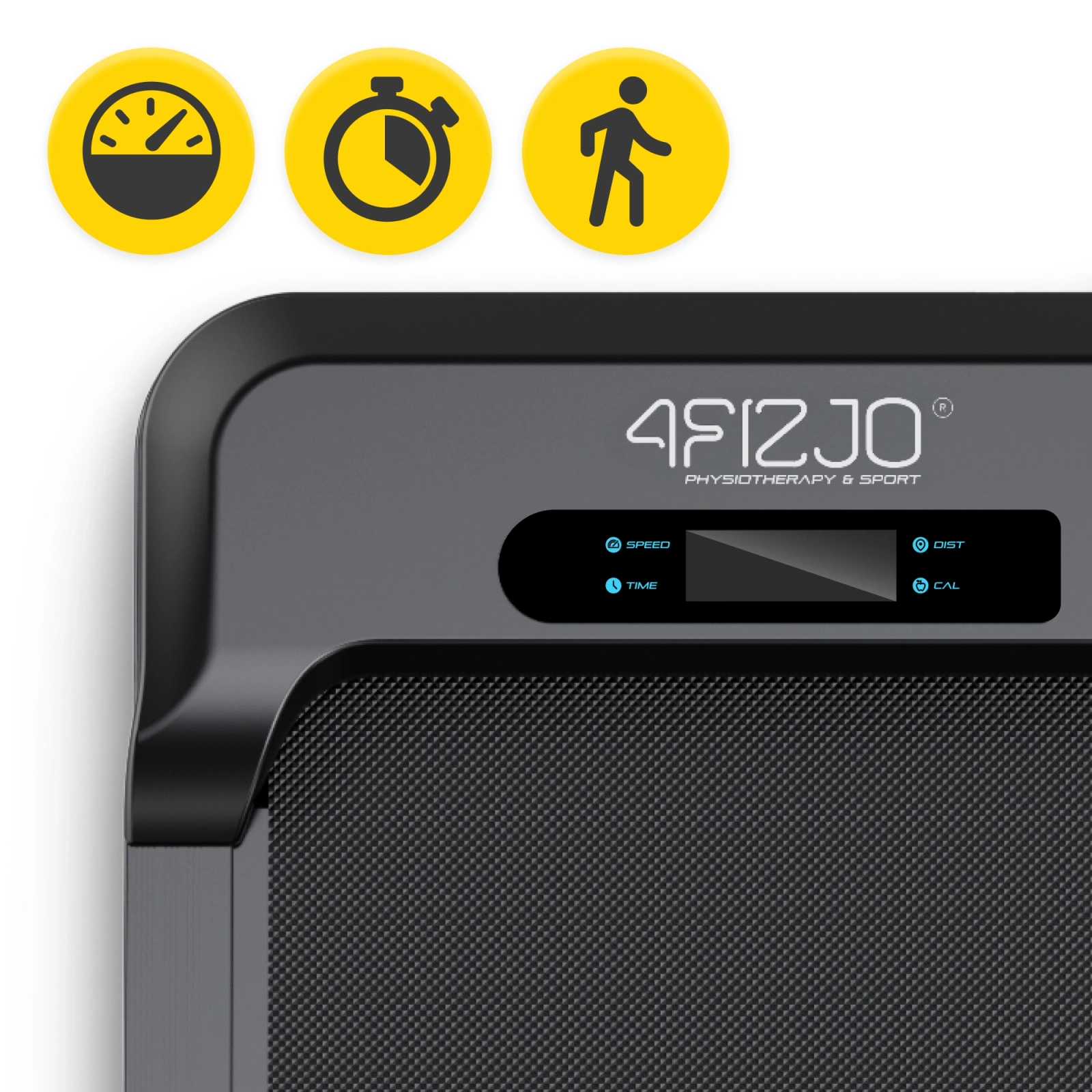 Korzystając z bieżni domowej walking pad MY-WALK 4FIZJO, możesz na bieżąco odczytywać z ekranu LED różne parametry treningu, w tym: