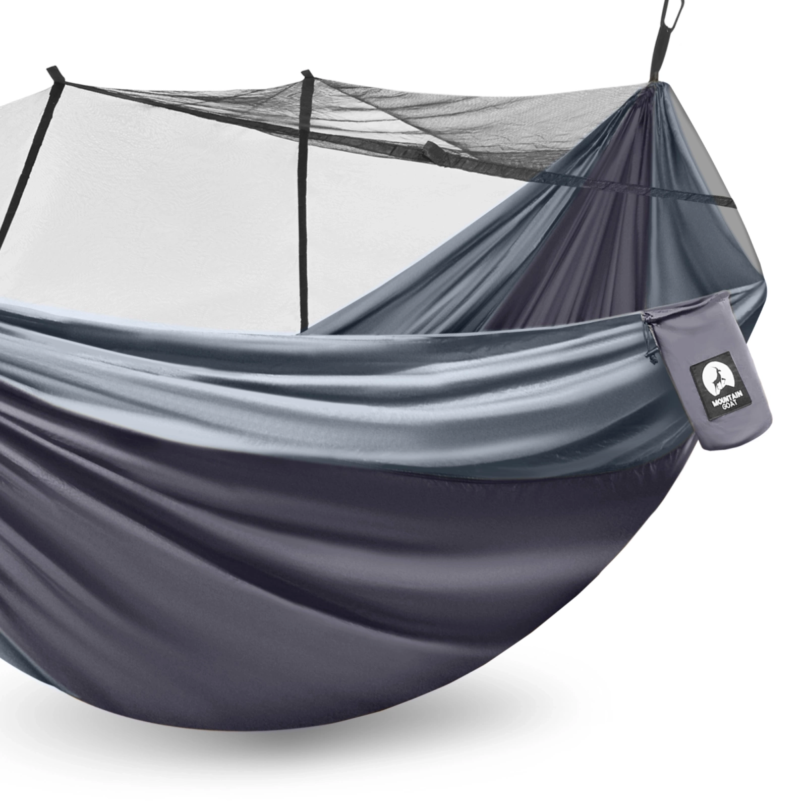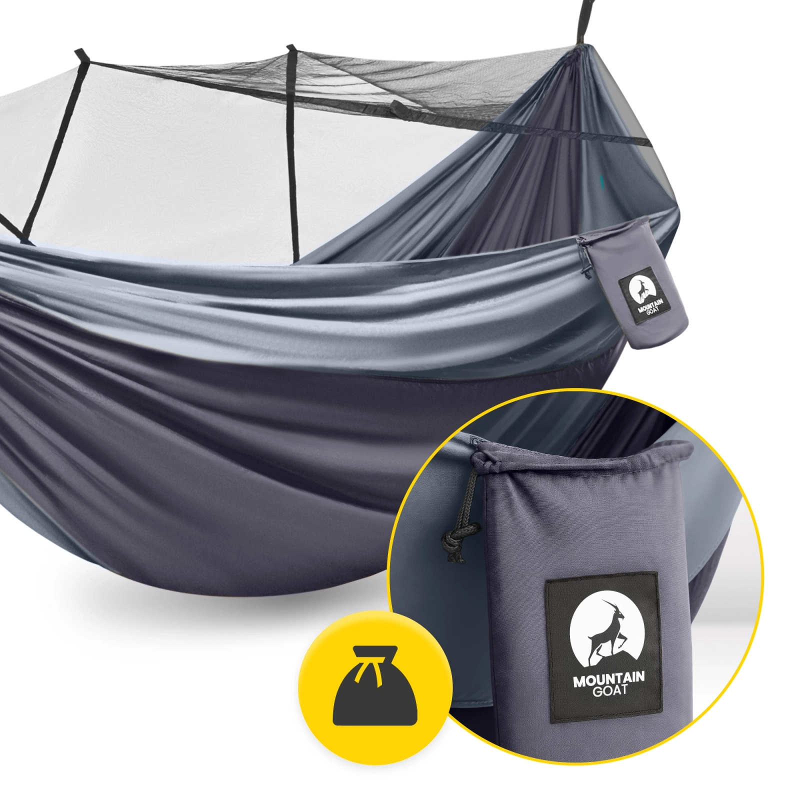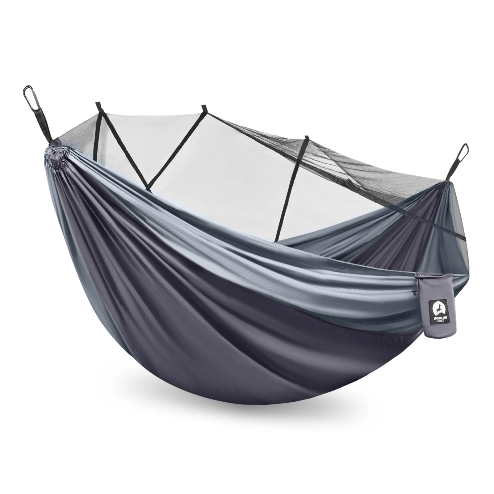 Hamak turystyczny dwuosobowy z moskiterią Mountain Goat szaro-grafitowy