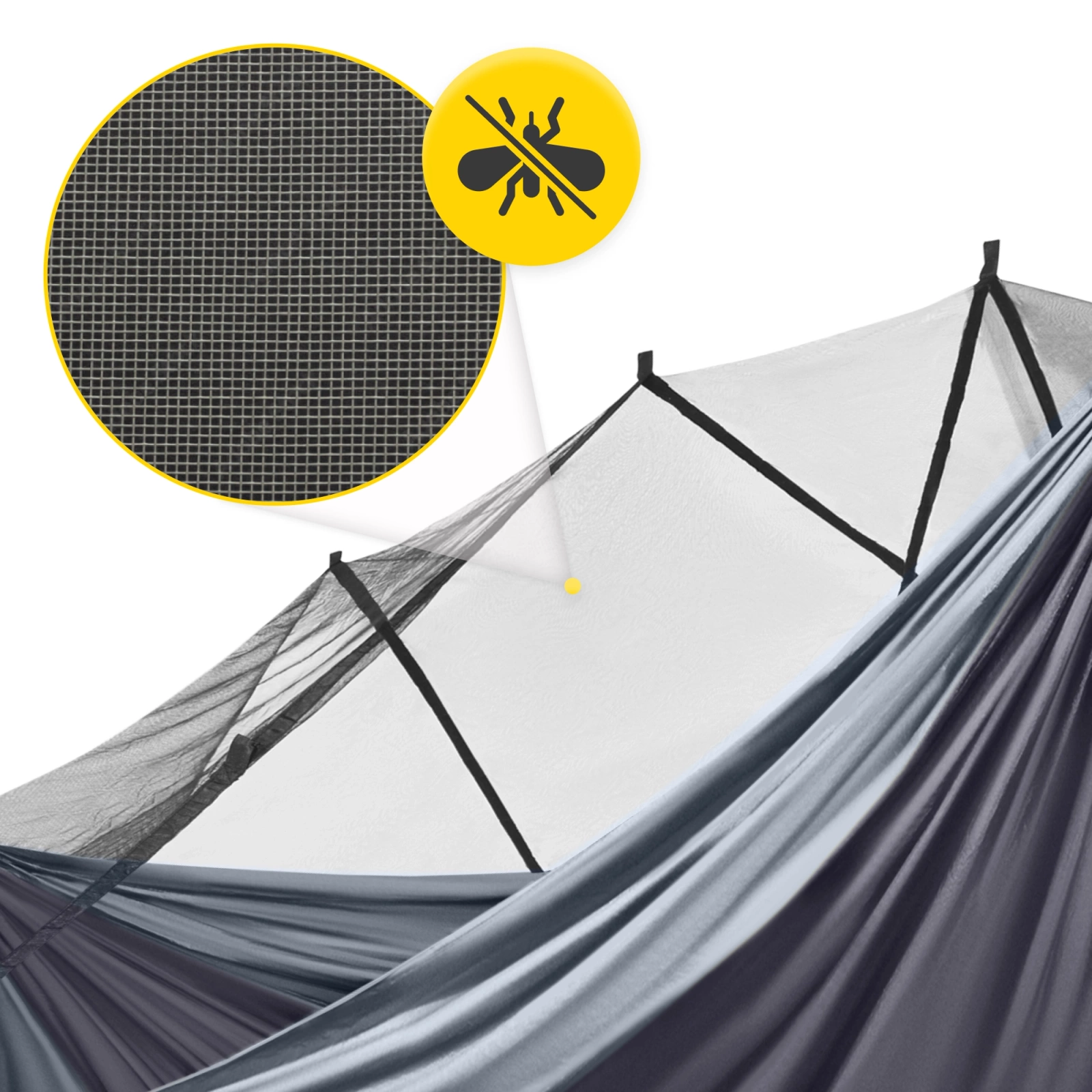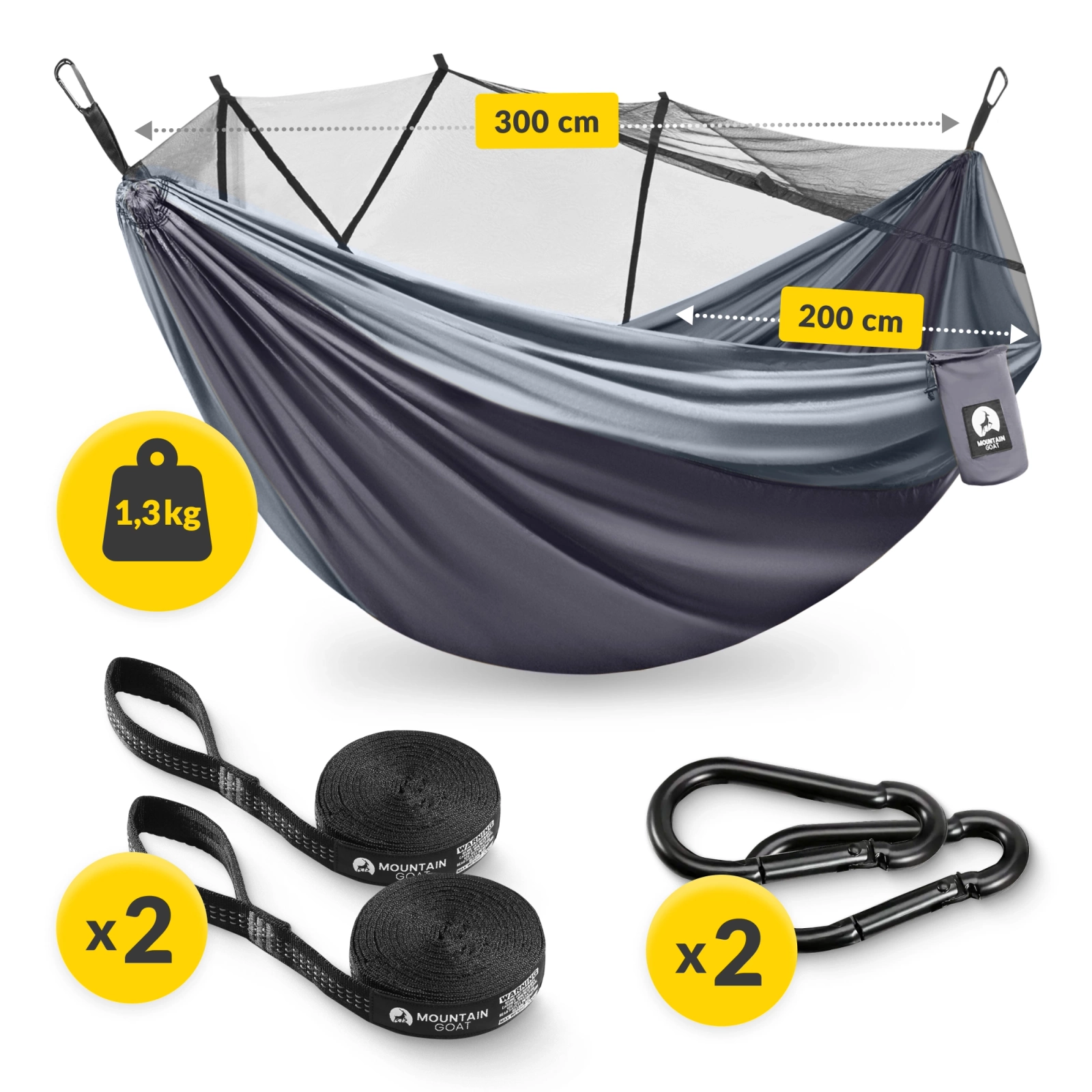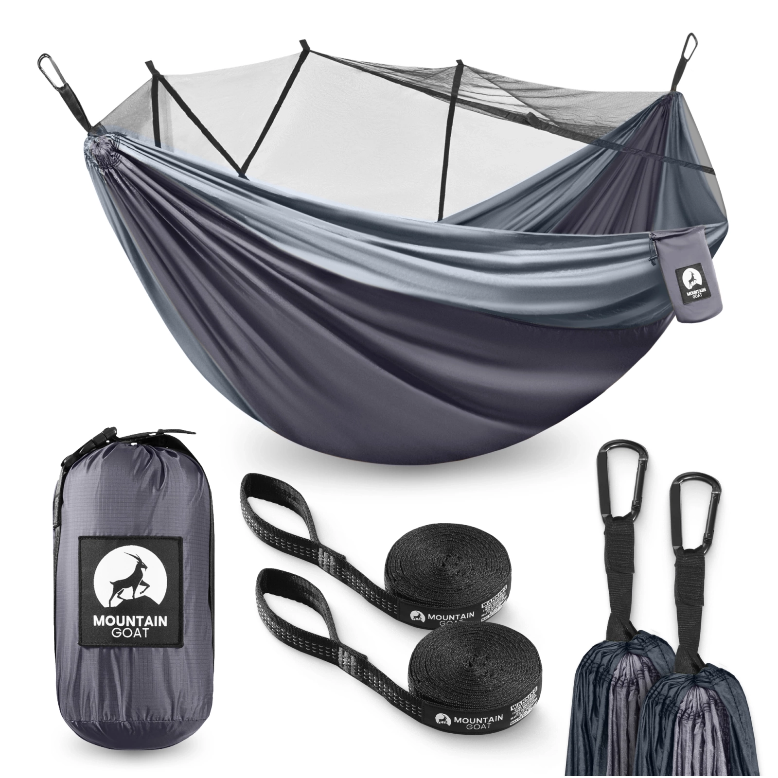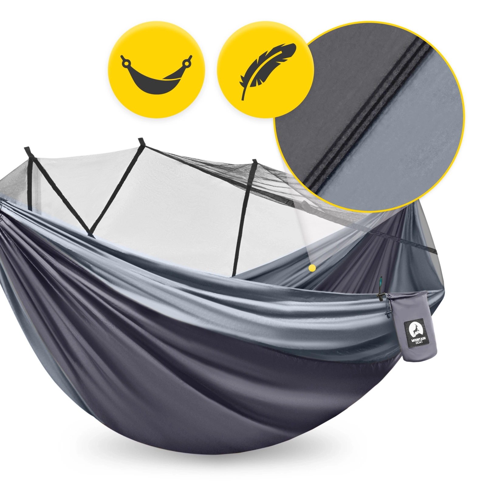 Hamak turystyczny dwuosobowy z moskiterią Mountain Goat szaro-grafitowy