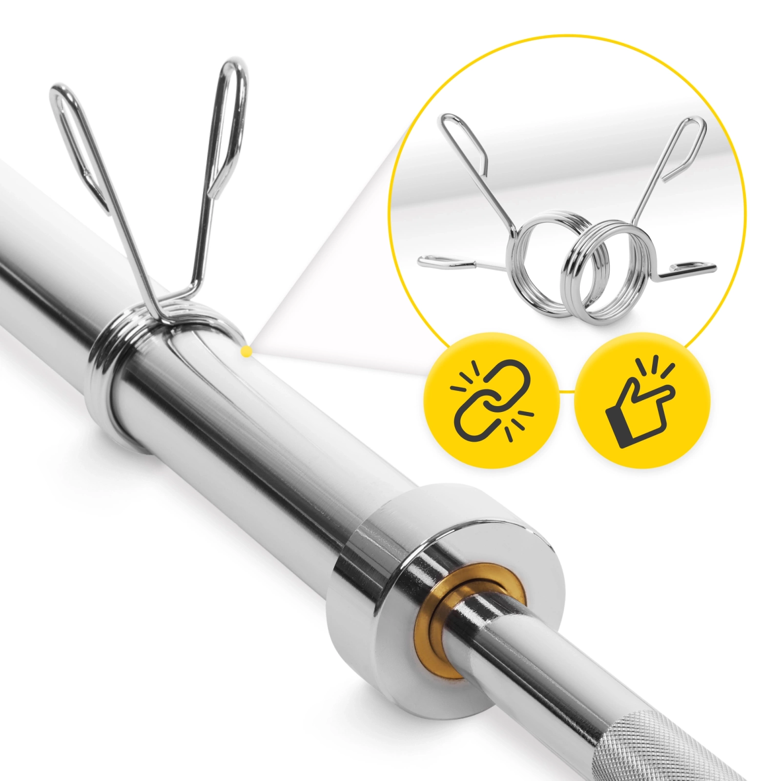 ✔️ Gryf olimpijski prosty 220 cm z łożyskami i zaciskami sprężynowymi o wadze ok. 20 kg