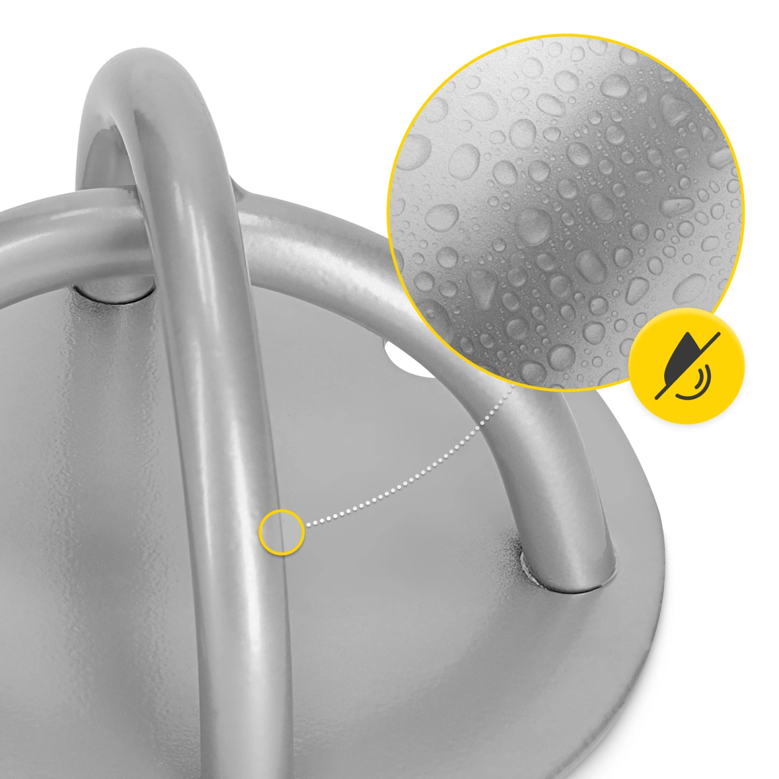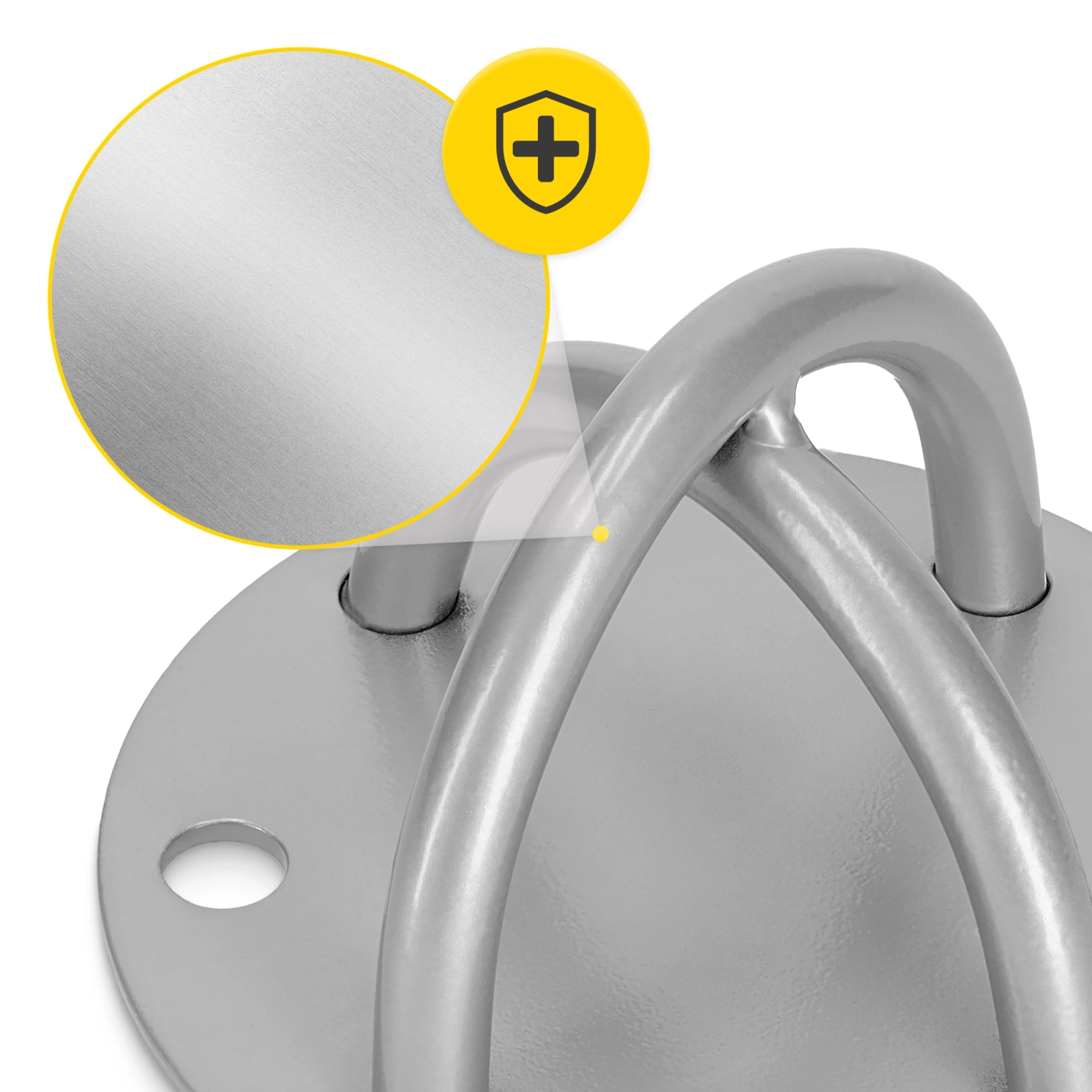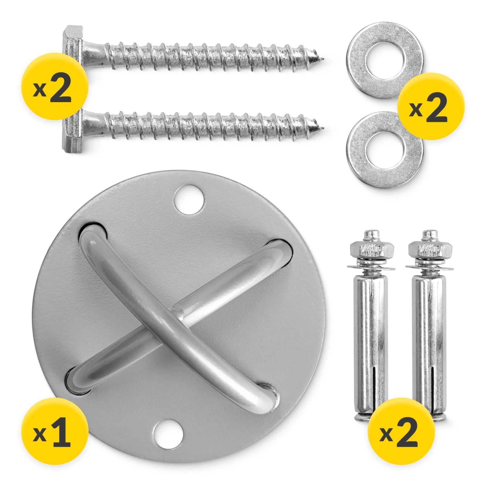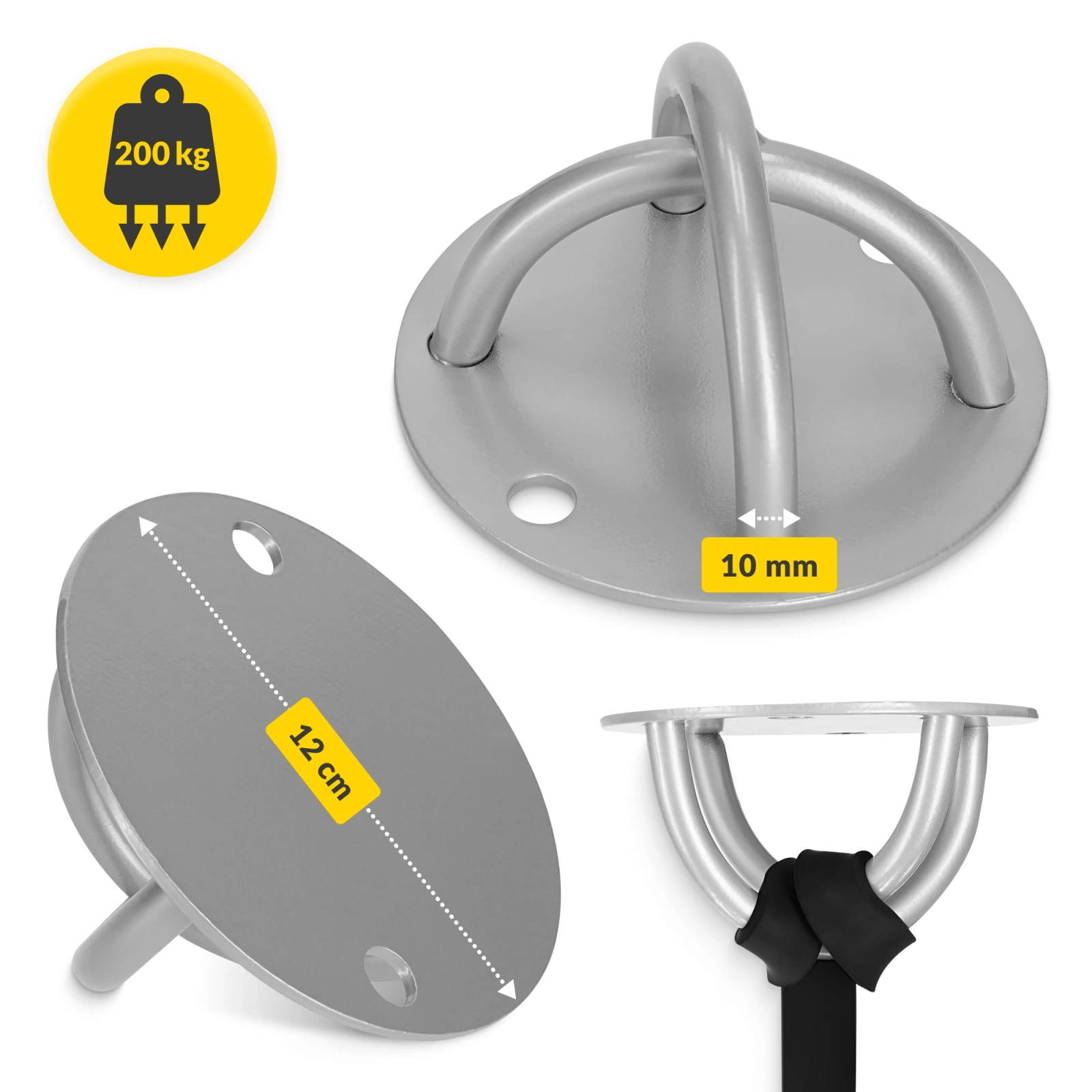 Uchwyt został wykonany z wytrzymałej stali i jest przystosowany do obciążeń do ok. 250 kg. Powłoka antykorozyjna chroni przed rdzą, więc możesz zamontować go nie tylko w zamkniętym pomieszczeniu, ale i w miejscach o podwyższonej wilgotności. Średnica mocowania wynosząca 12 cm oraz grubość uchwytów 10 mm zapewniają stabilność przy intensywnych ćwiczeniach. Zestaw zawiera również metalowe kotwy i wkręty, które gwarantują bezpieczną instalację na różnych powierzchniach – czy to na ścianie, czy na suficie. Montaż jest szybki i prosty, a sama konstrukcja pozostaje nienaruszona nawet po długotrwałym użytkowaniu.