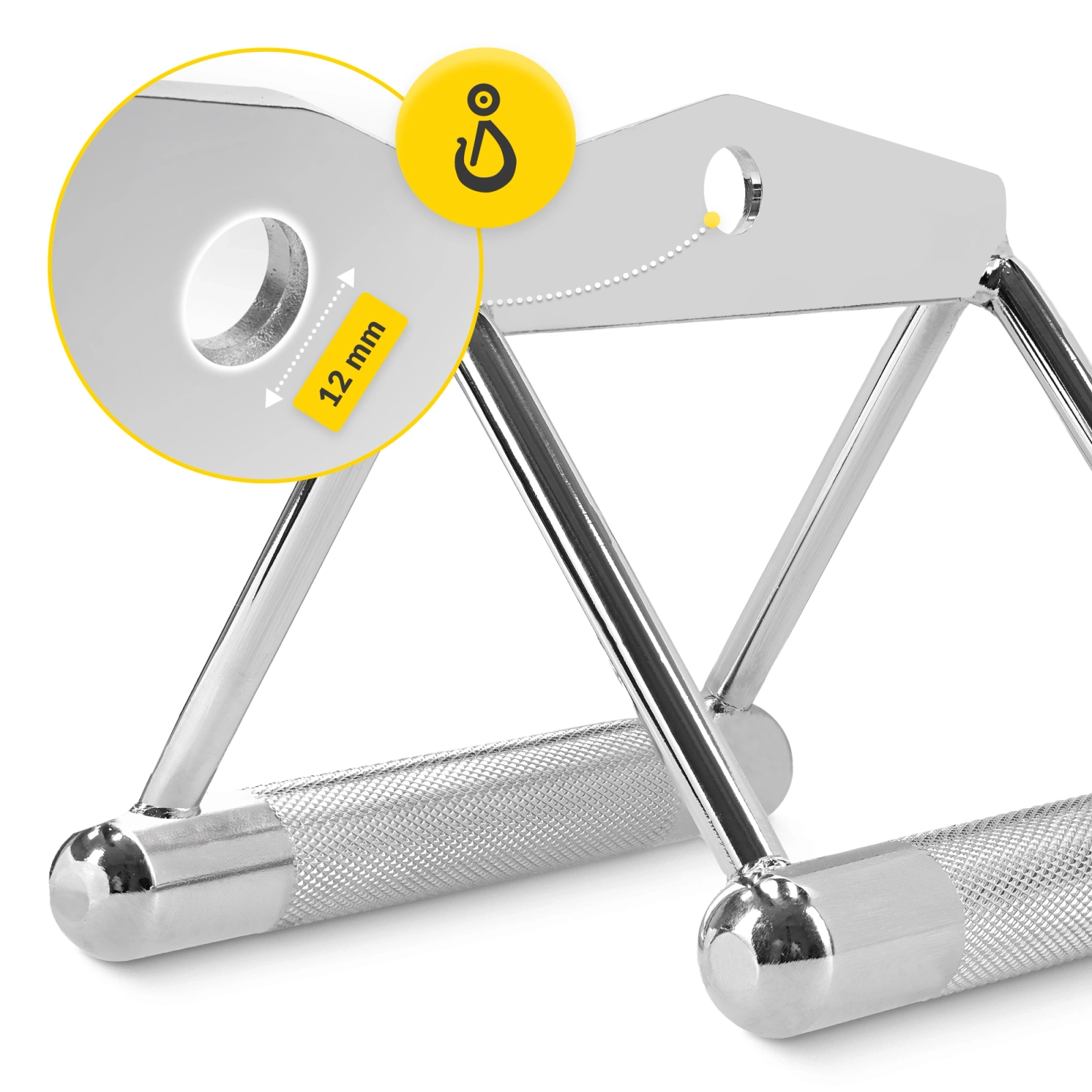 ✅ Uniwersalna konstrukcja pozwala zamontować uchwyt trójkątny zarówno do wyciągu górnego jak i dolnego.