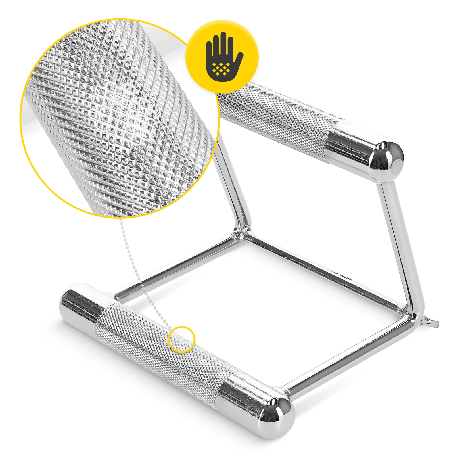 ✅ Ryflowana rękojeść zapobiega wyślizgnięciu się uchwytu z dłoni podczas treningu, co jest niezwykle przydatne podczas ćwiczeń z dużym obciążeniem.