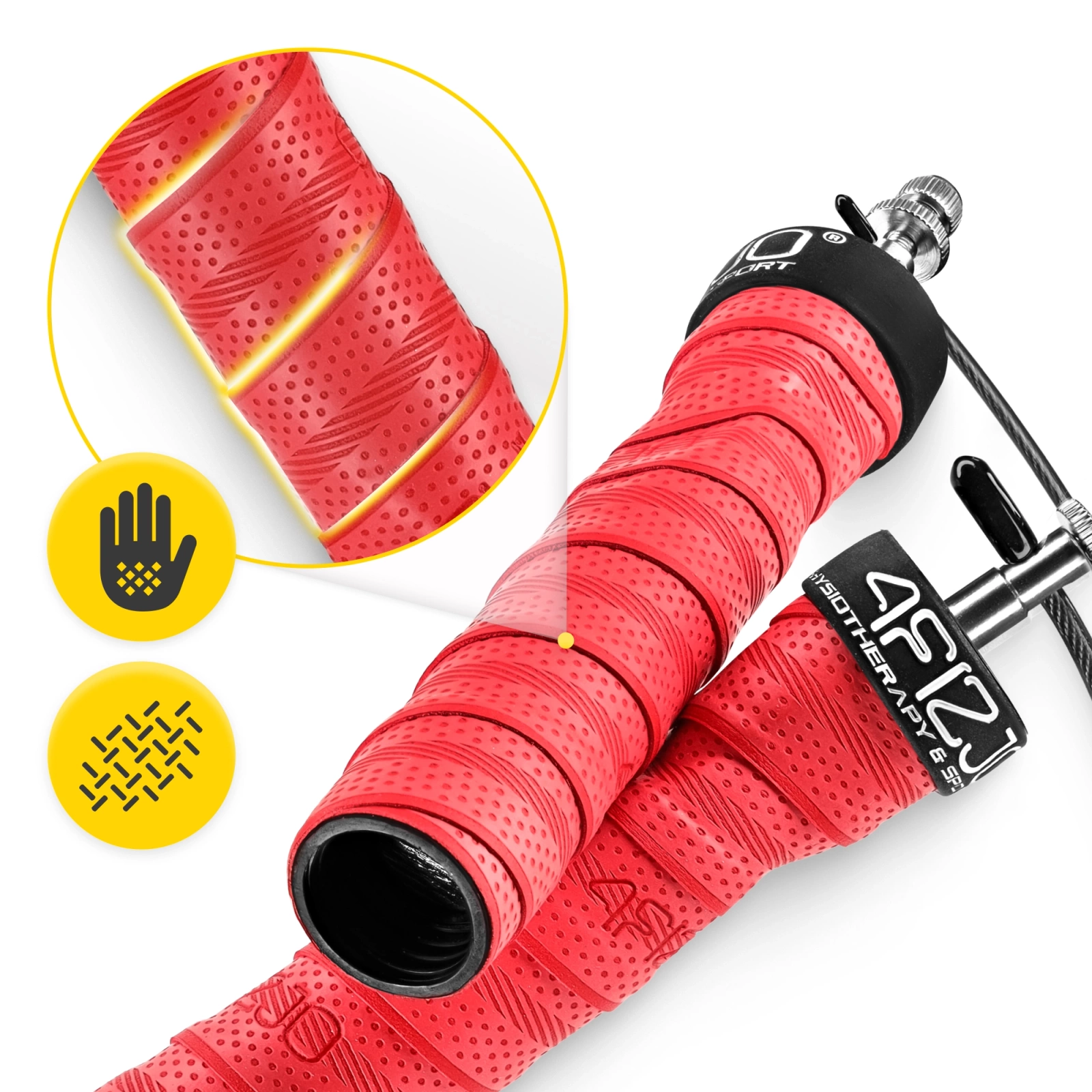 ✅ Ergonomiczne rączki idealnie leżą w dłoniach. Podczas intensywnych treningów chwyt pozostaje pewny, a nadgarstki się nie męczą. Rączki wyposażone w owijki piankowe nie wchłaniają wilgoci i są antypoślizgowe.
