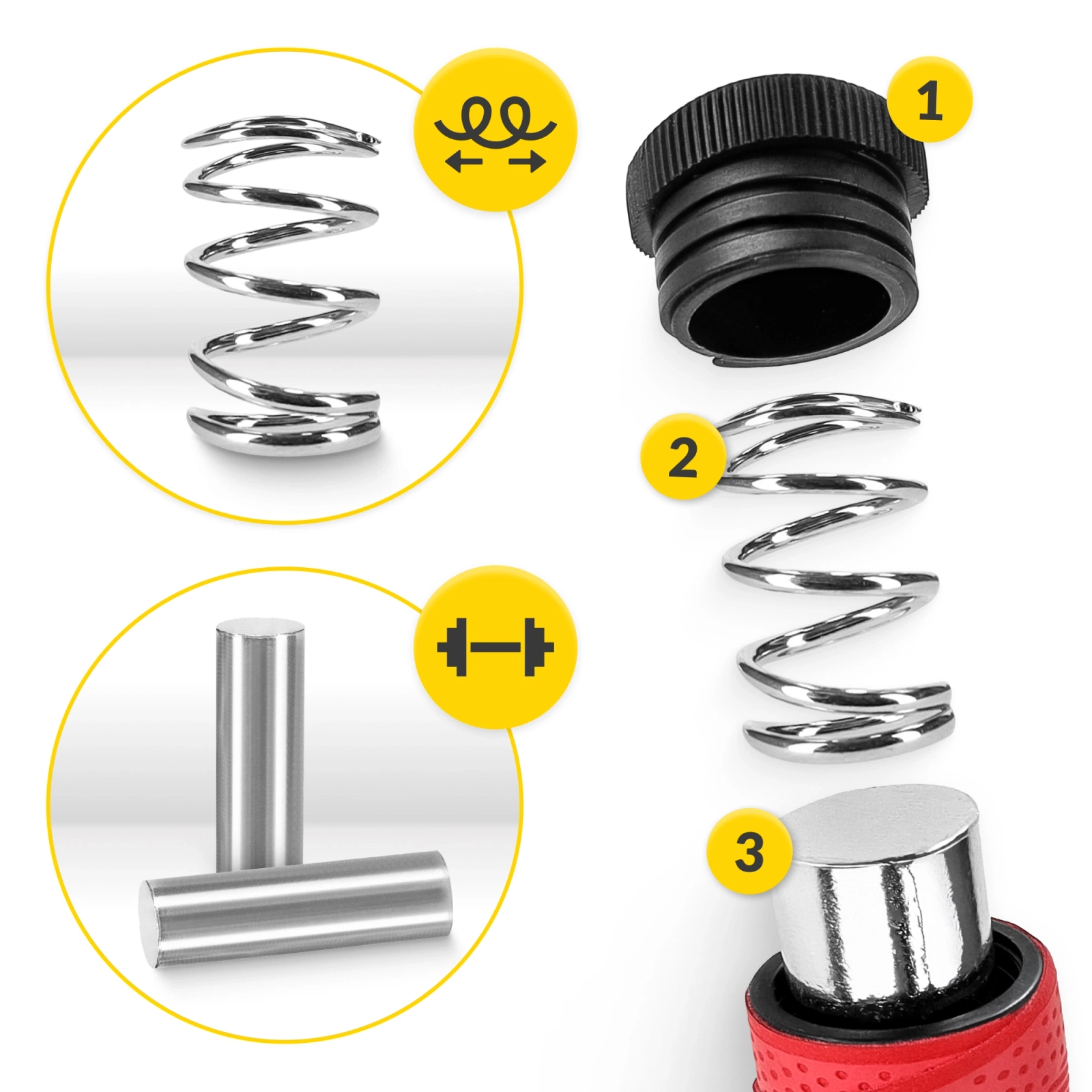 ✅ Skakanka z obciążeniem 4FIZJO w rączkach posiada wyjmowane metalowe wkłady. Dzięki czemu to Ty decydujesz czy chcesz ćwiczyć z ciężką, czy z lekką wersją skakanki.