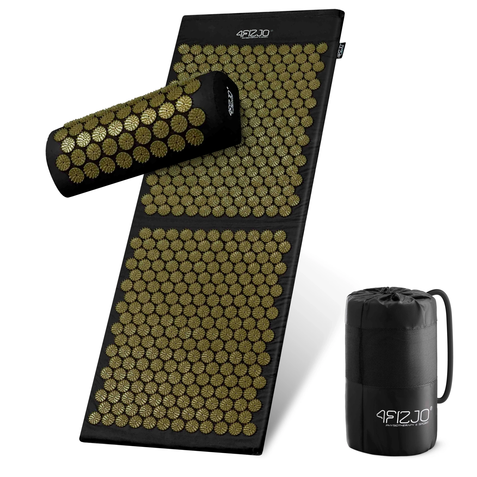 Duża mata do akupresury z poduszką XL 4FIZJO klasyczna czarno-złota
