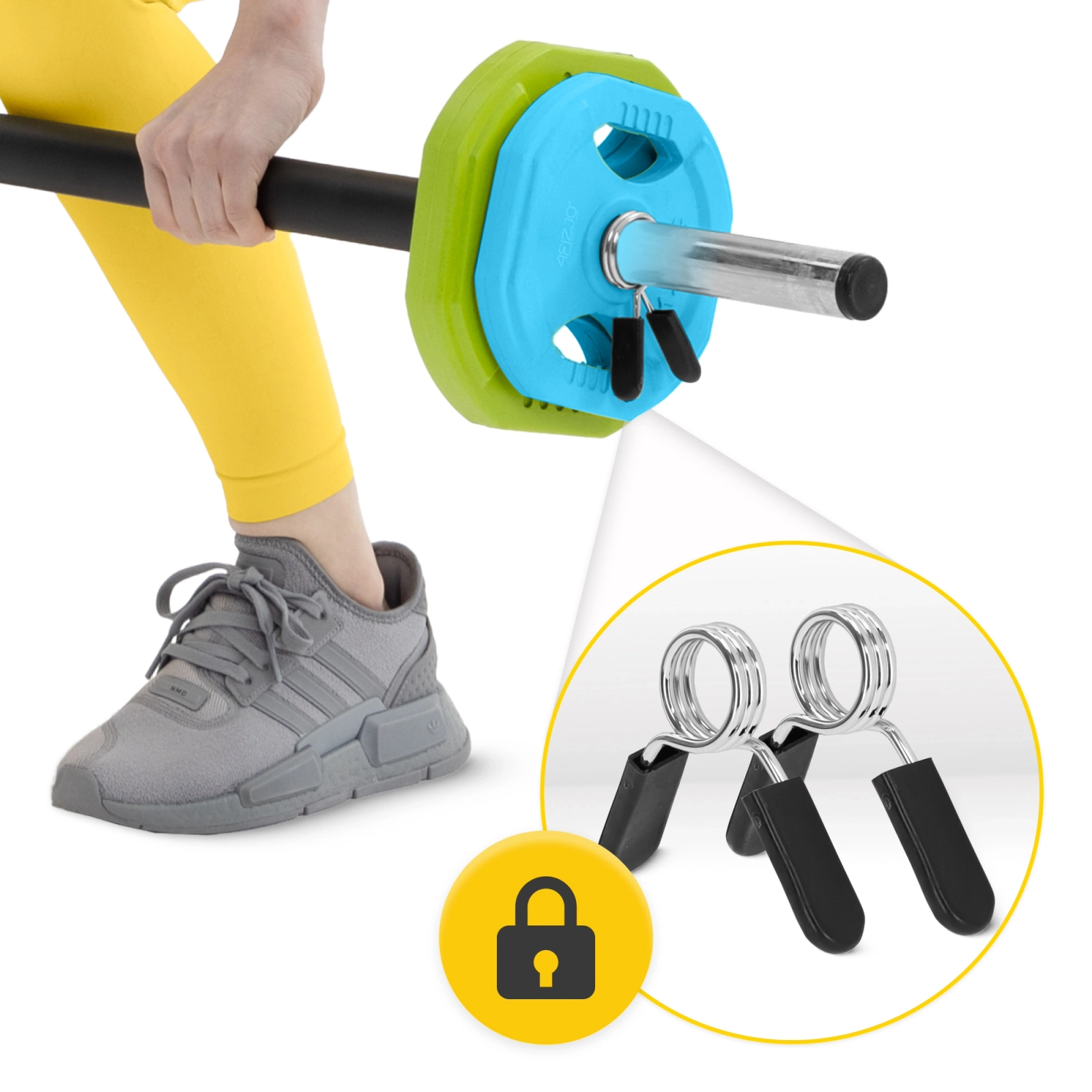 ▶️ Zaciski motylkowe – pozwalają na odpowiednie umieszczenie talerzy i utrzymują je na swoim miejscu podczas wykonywania ćwiczeń, co zapewnia pełne bezpieczeństwo.