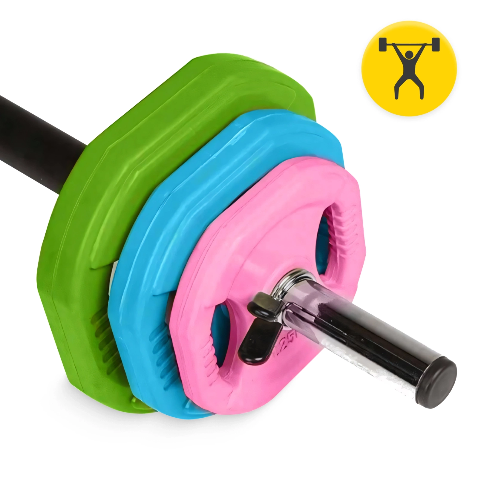 Razem z gryfem otrzymasz 3 pary talerzy o różnym obciążeniu oraz 2 zaciski motylkowe. Nie potrzebujesz nic więcej, by zacząć przygodę z ciężarami i cieszyć się pierwszymi efektami już po kilku treningach.