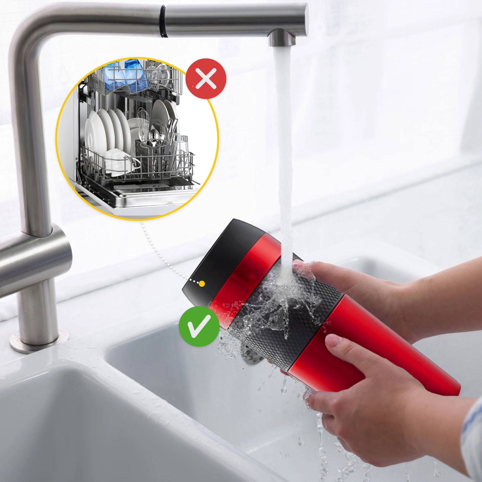 Kubek termiczny na herbatę i kawę MOUNTAIN GOAT TRAVEL przeznaczony jest do mycia ręcznego. Gładką powierzchnię stali nierdzewnej bez problemu utrzymasz w czystości. W razie potrzeby silikonowe elementy w prosty sposób oddzielisz od metalowych części, by dokładnie je umyć lub wyparzyć.