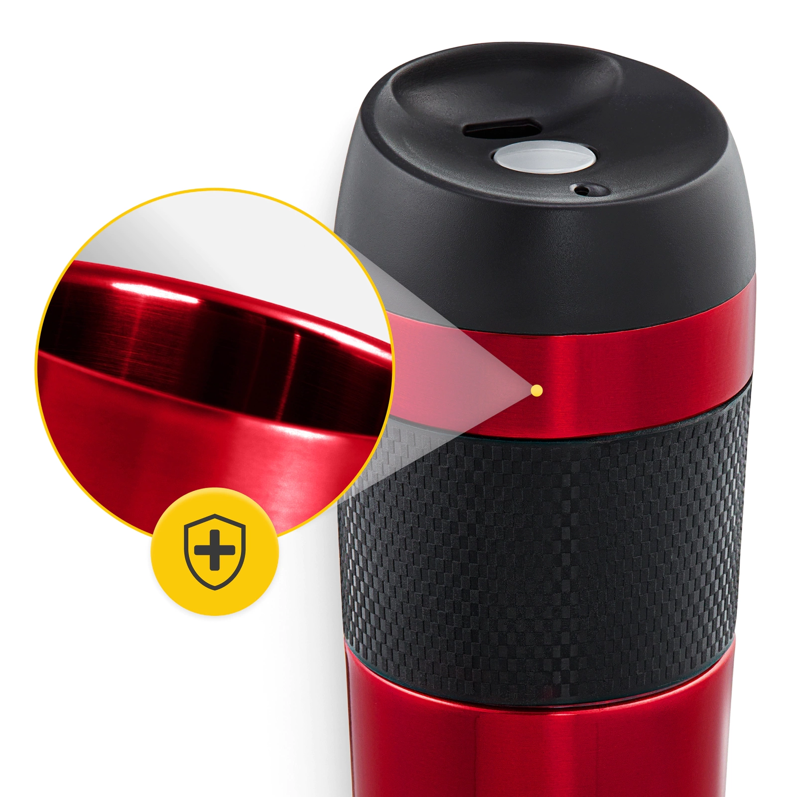 Kubek termiczny na herbatę i kawę to idealne rozwiązanie również dla tych, którzy pracują z domu. Wlej do niego gorący napój i bez obaw postaw na biurku – przyciskowe zamknięcie szczelnie zamyka ustnik kubka, by zapobiec wylaniu się napoju. Dzięki temu nie zalejesz komputera ani dokumentów.