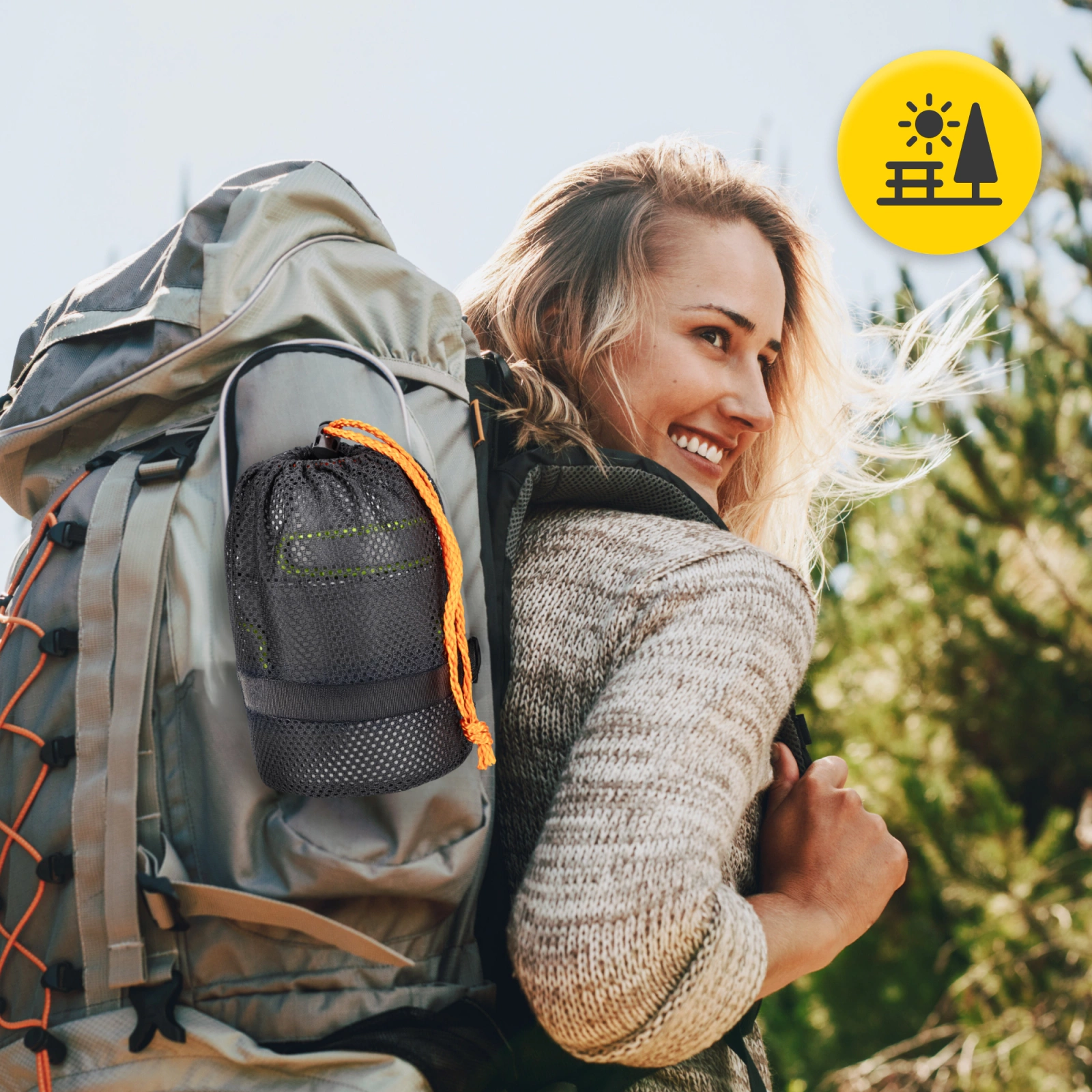 Worek ze ściąganym sznurkiem umożliwia przywiązanie menażki do plecaka, co pozwala zaoszczędzić miejsce.