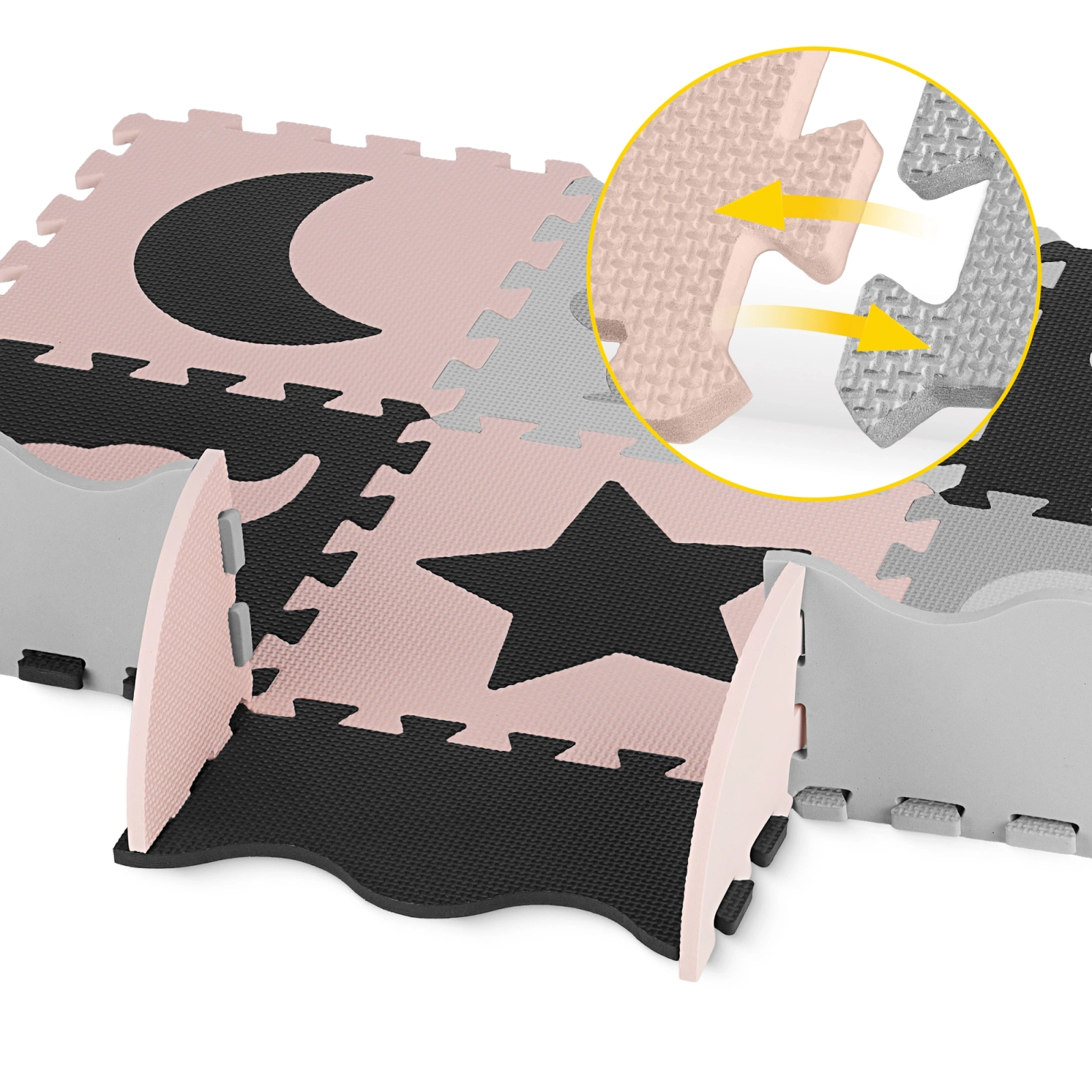 ✅ Ochrona podczas zabawy – idealna do raczkowania i nauki chodzenia, chroni dziecko przed upadkami, a ramki puzzli pozwalają na ułożenie z maty kojca dla najmłodszych.