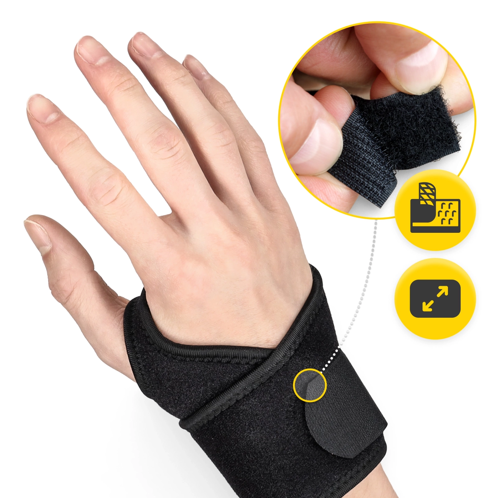 Dodatkowy pasek na kciuk z dużym otworem zapewnia jeszcze lepsze dopasowanie stabilizatora do dłoni. Co więcej, pozwala on na swobodne manewrowanie ręką i wolnymi palcami przy jednoczesnym odciążeniu stawu nadgarstkowego. Nie musisz się też martwić o niechciane przesuwanie i obracanie się ortezy.