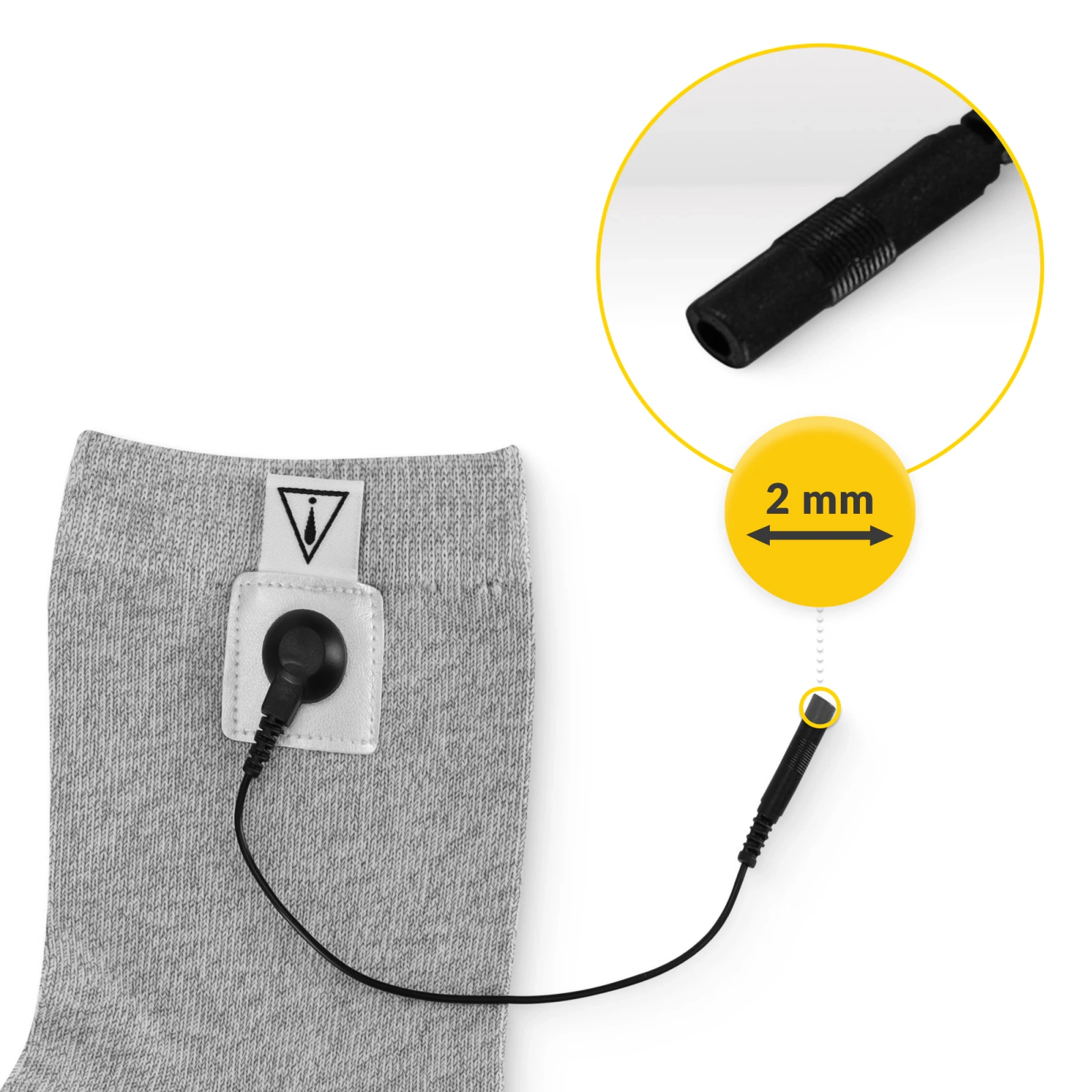 ➡️ Przymocuj elektrodę żelową, dołączoną do zestawu, ok. 4 cm od górnej krawędzi skarpetki.